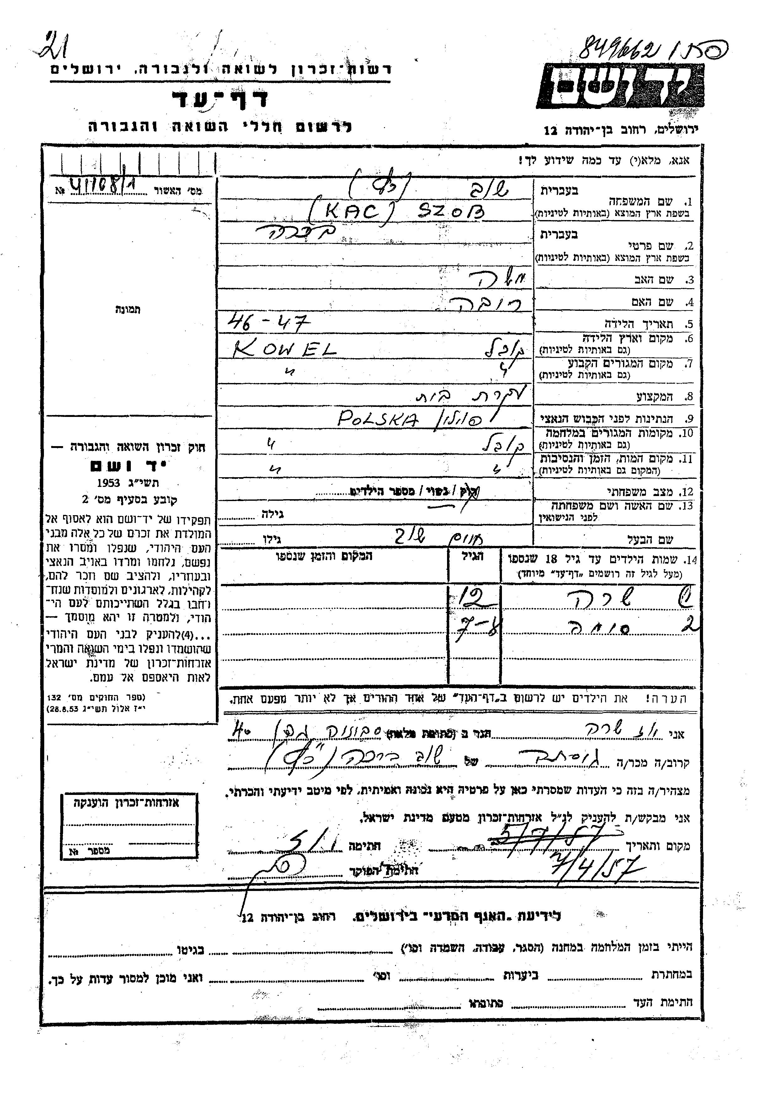 Szob Shub Sara Kowel, Polen Gedenkblatt