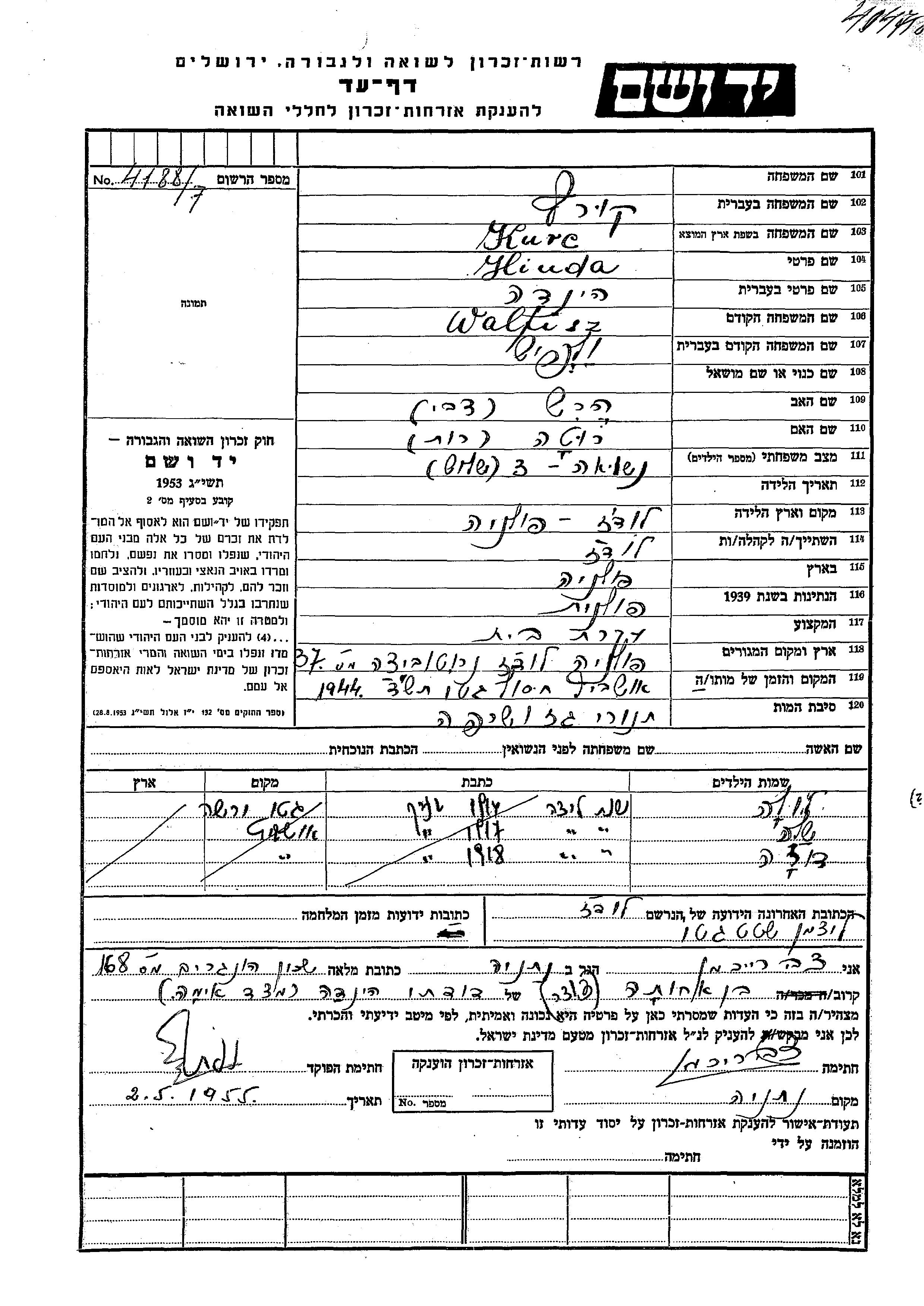 Lola Kurc wurde im Jahr 1914 geboren. Er/sie war der/ die Sohn/Tochter von Hinda, geb. Walfisz. Vor dem Zweiten Weltkrieg er/sie in Lodz, Polen.