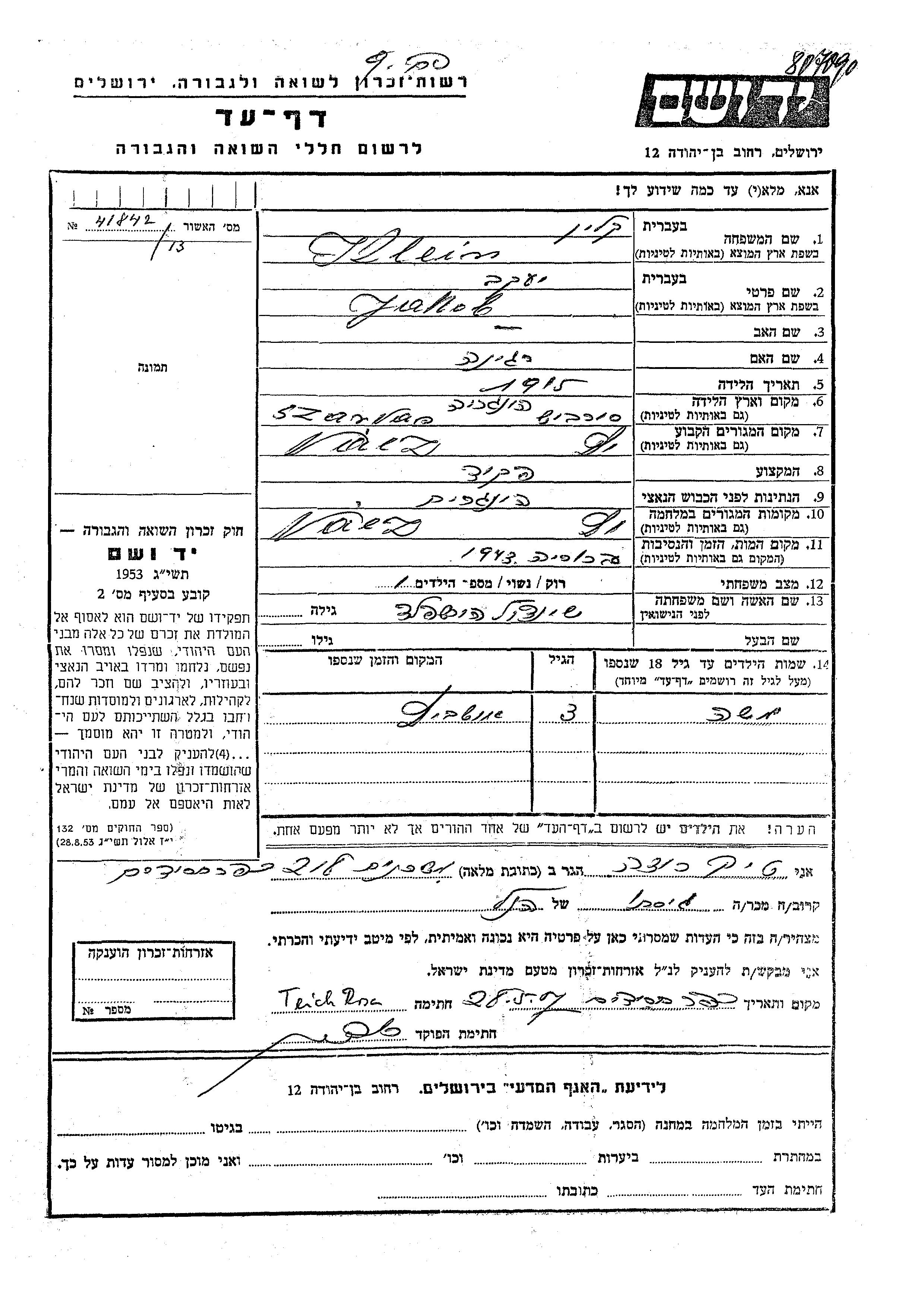 Moshe Klein Kalin wurde Er war der Sohn von Jakob und Sheina, geb. Hirshfeld. Er war Kind. Vor dem Zweiten Weltkrieg lebte er in Vacz, Ungarn. Während des Krieges war er in Vacz, Ungarn.