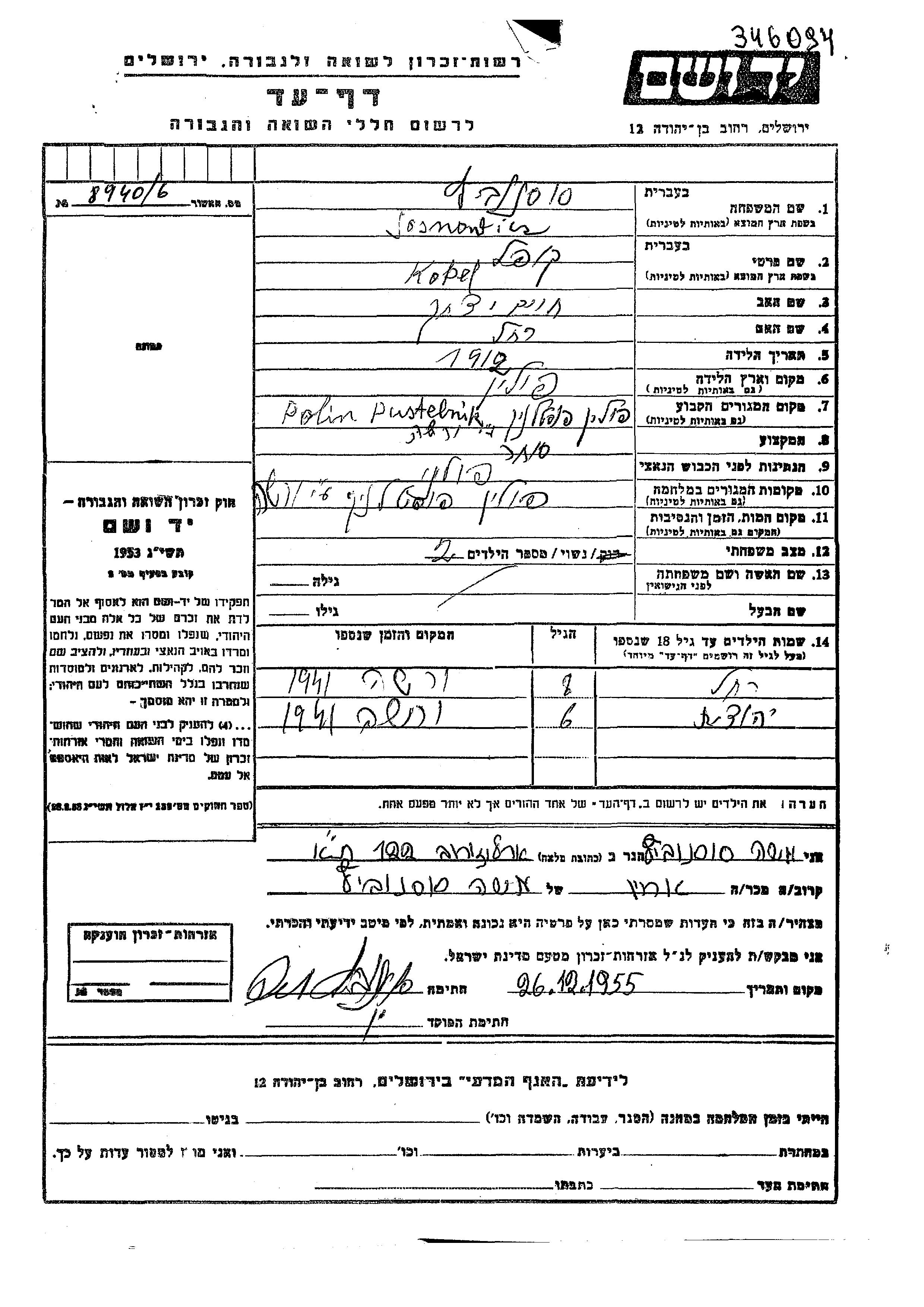 Rakhel Sosnowicz wurde Sie war die Tochter von Kopel. Sie war Kind. Vor dem Zweiten Weltkrieg lebte sie in Pustelnik, Polen. Während des Krieges war sie in Pustelnik, Polen.