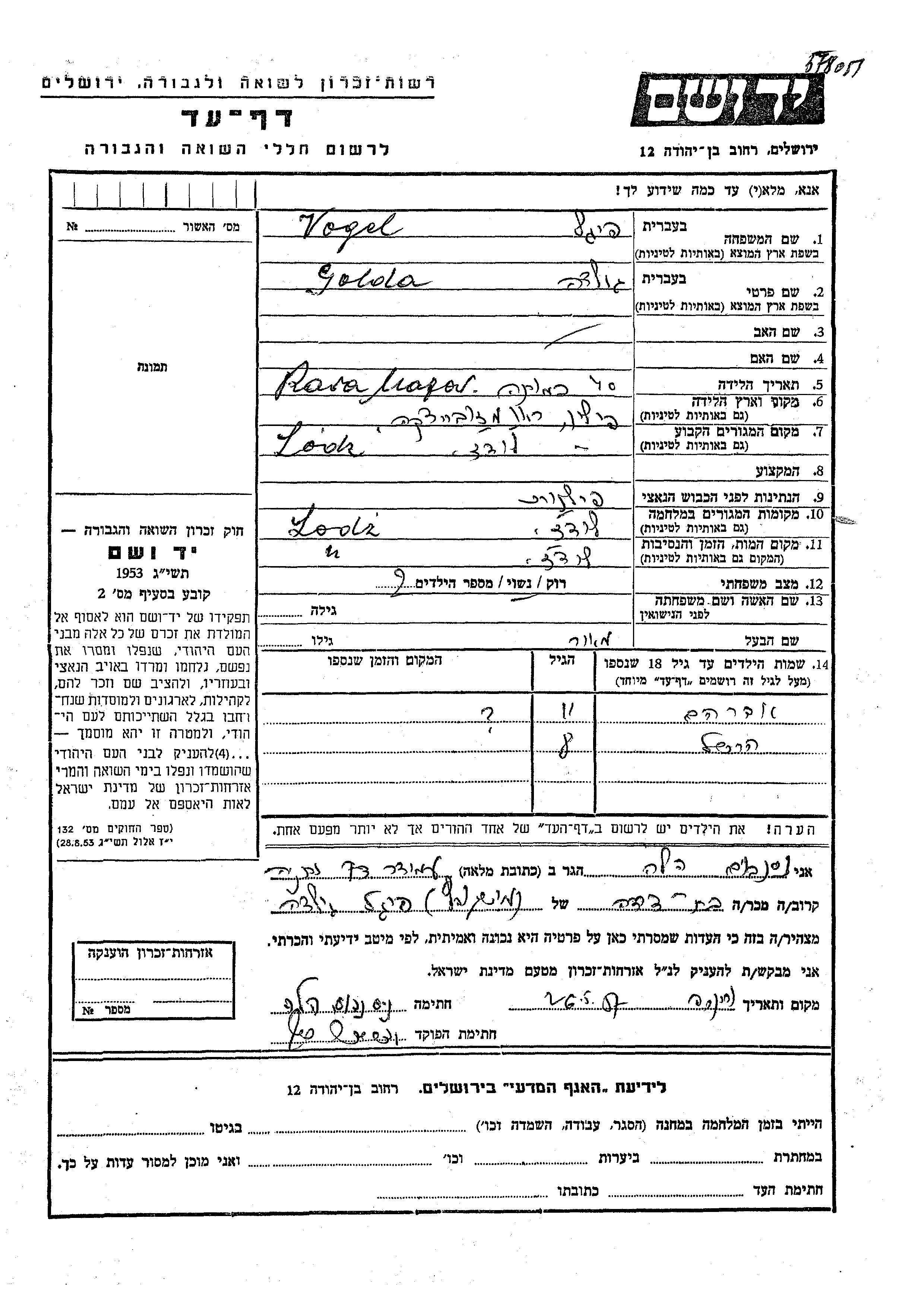 Hershel Vogel wurde Er war der Sohn von Meir und Golda. Er war Kind. Vor dem Zweiten Weltkrieg lebte er in Lodz, Polen. Während des Krieges war er in Lodz, Polen.