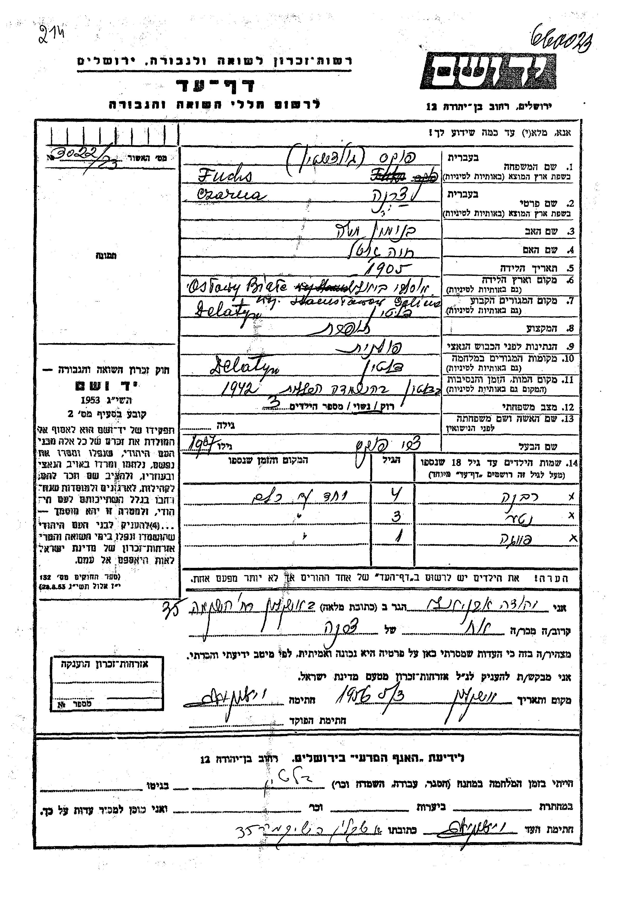 Nute Fuchs wurde Er/sie war der/ die Sohn/Tochter von Tzvi und Czarna, geb. Goldshtein. Er/Sie war Kind. Vor dem Zweiten Weltkrieg er/sie in Delatyn, Polen. Während des Krieges war er/sie in Delatyn, Polen.