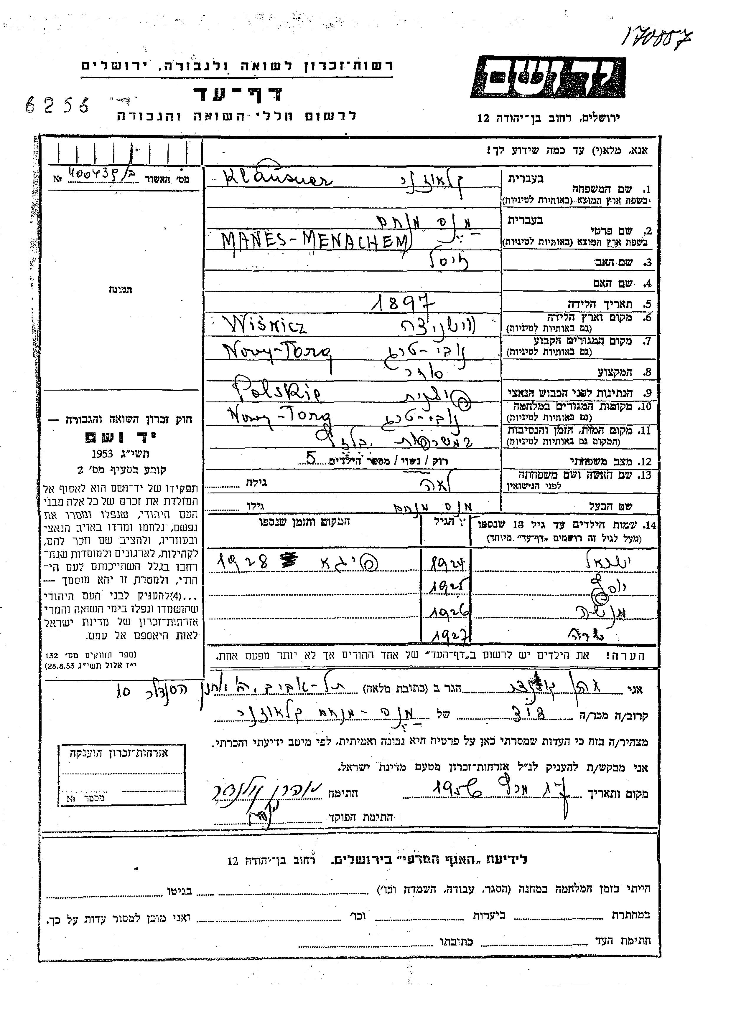 Sara Klauzner wurde im Jahr 1927 geboren. Sie war die Tochter von Menachem Manes und Lea. Sie war Kind. Vor dem Zweiten Weltkrieg lebte sie in Novy Targ, Polen. Während des Krieges war sie in Novy Targ, Polen.