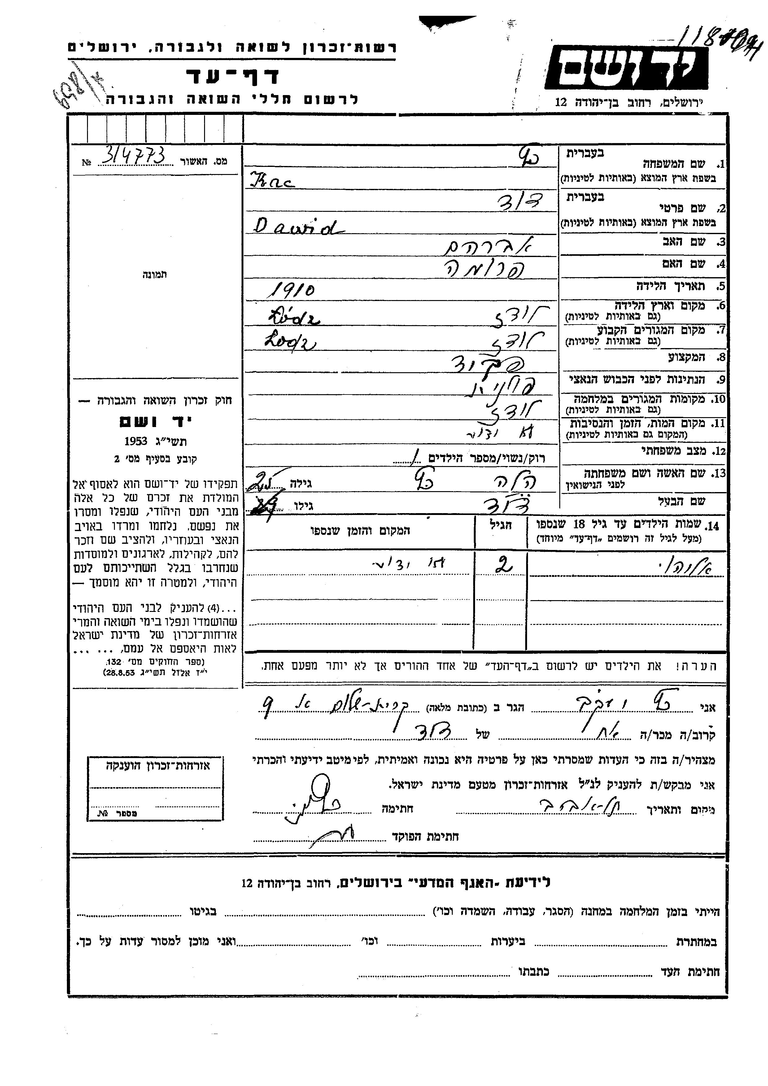 Kac Eliahu Lodz, Polen Gedenkblatt