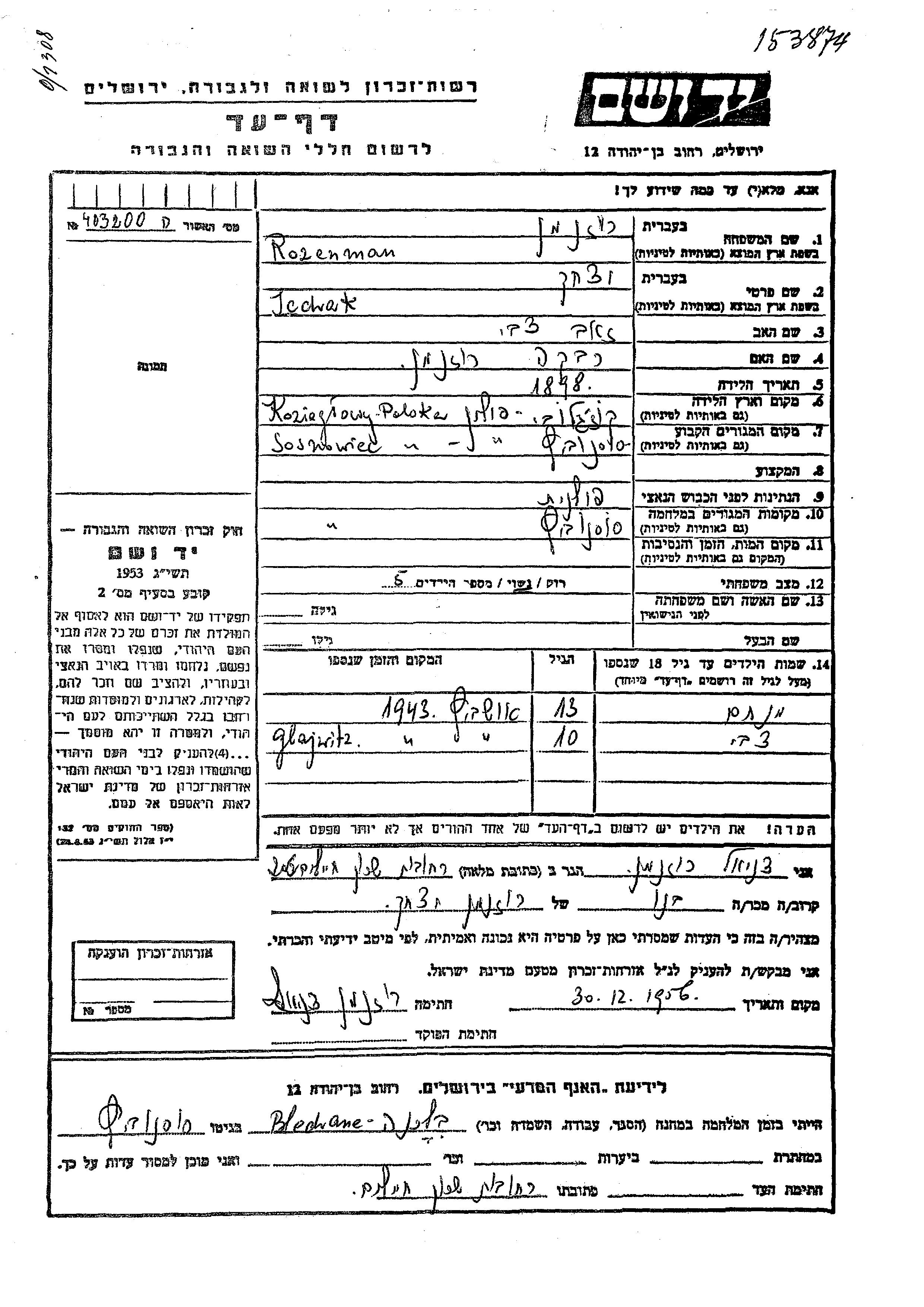 Rozenman Menakhem Sosnowiec, Polen Gedenkblatt