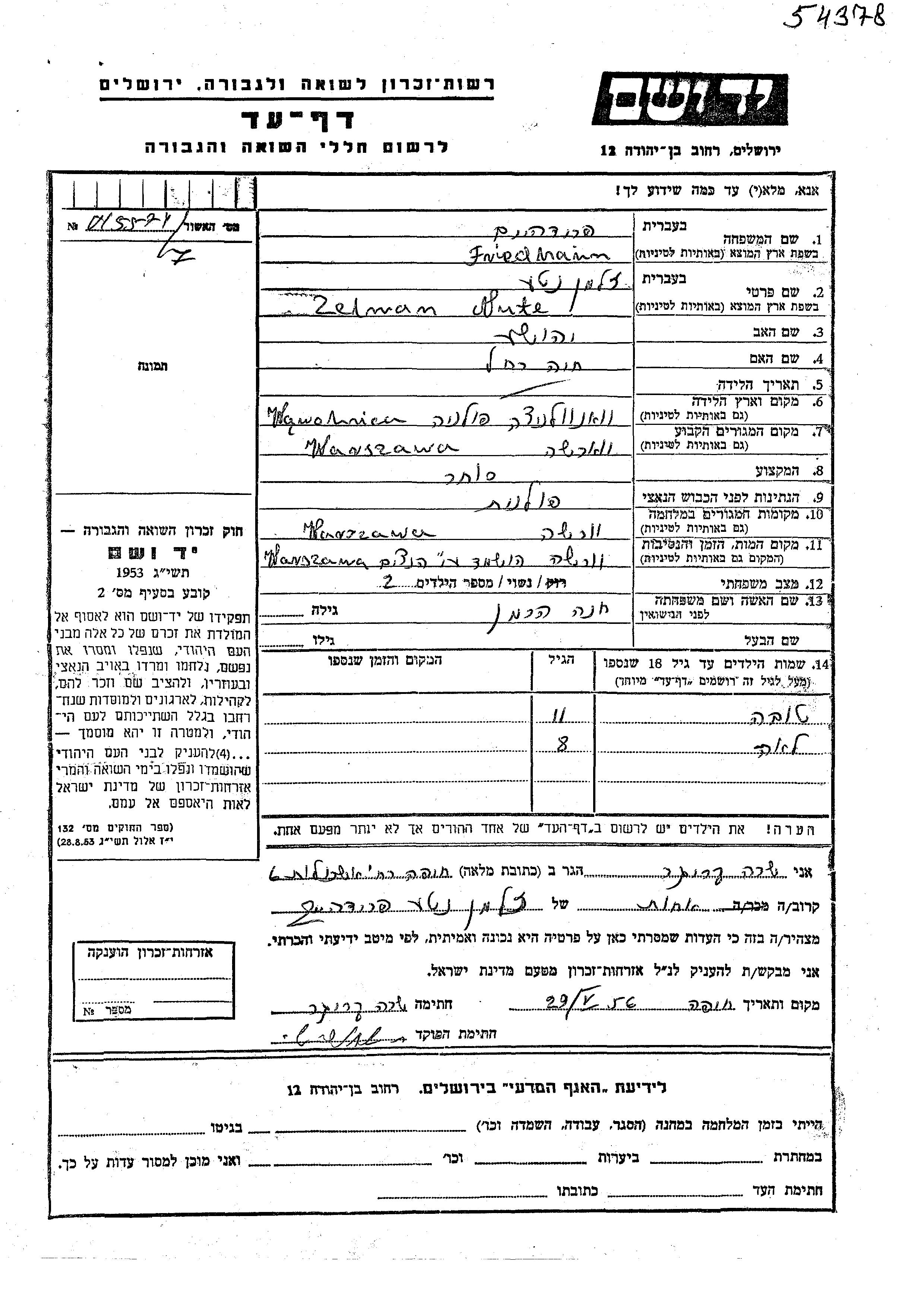 Lea Friedheim wurde Sie war die Tochter von Zelman Nute Nute und Khana. Sie war Kind. Vor dem Zweiten Weltkrieg lebte sie in Varsha, Polen. Während des Krieges war sie in Warszawa, Polen.