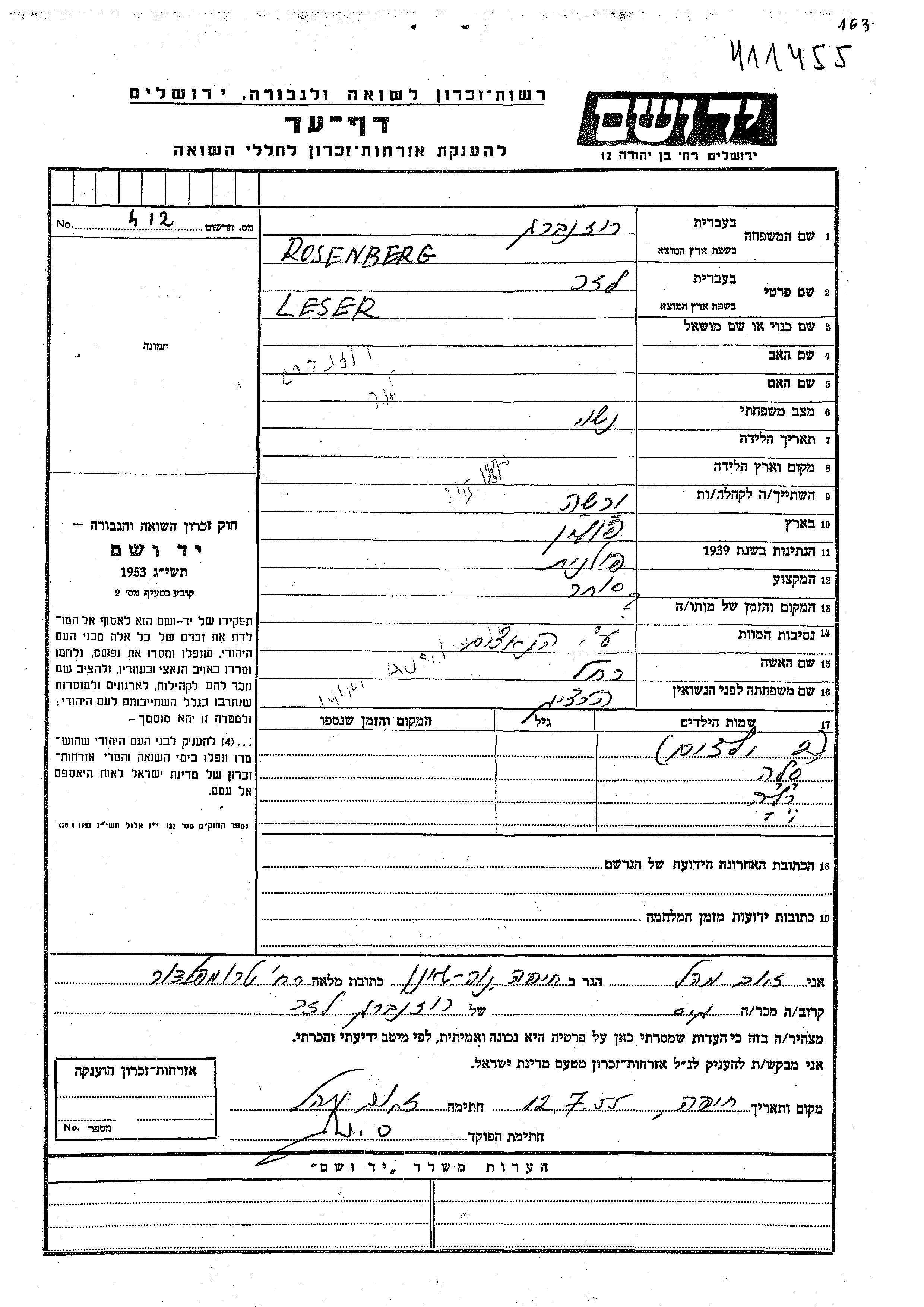 Sala Rosenberg wurde Sie war die Tochter von Eliezer und Rakhel, geb. Hertzig. Sie war Kind. Während des Krieges war sie in Warsaw, Polen.