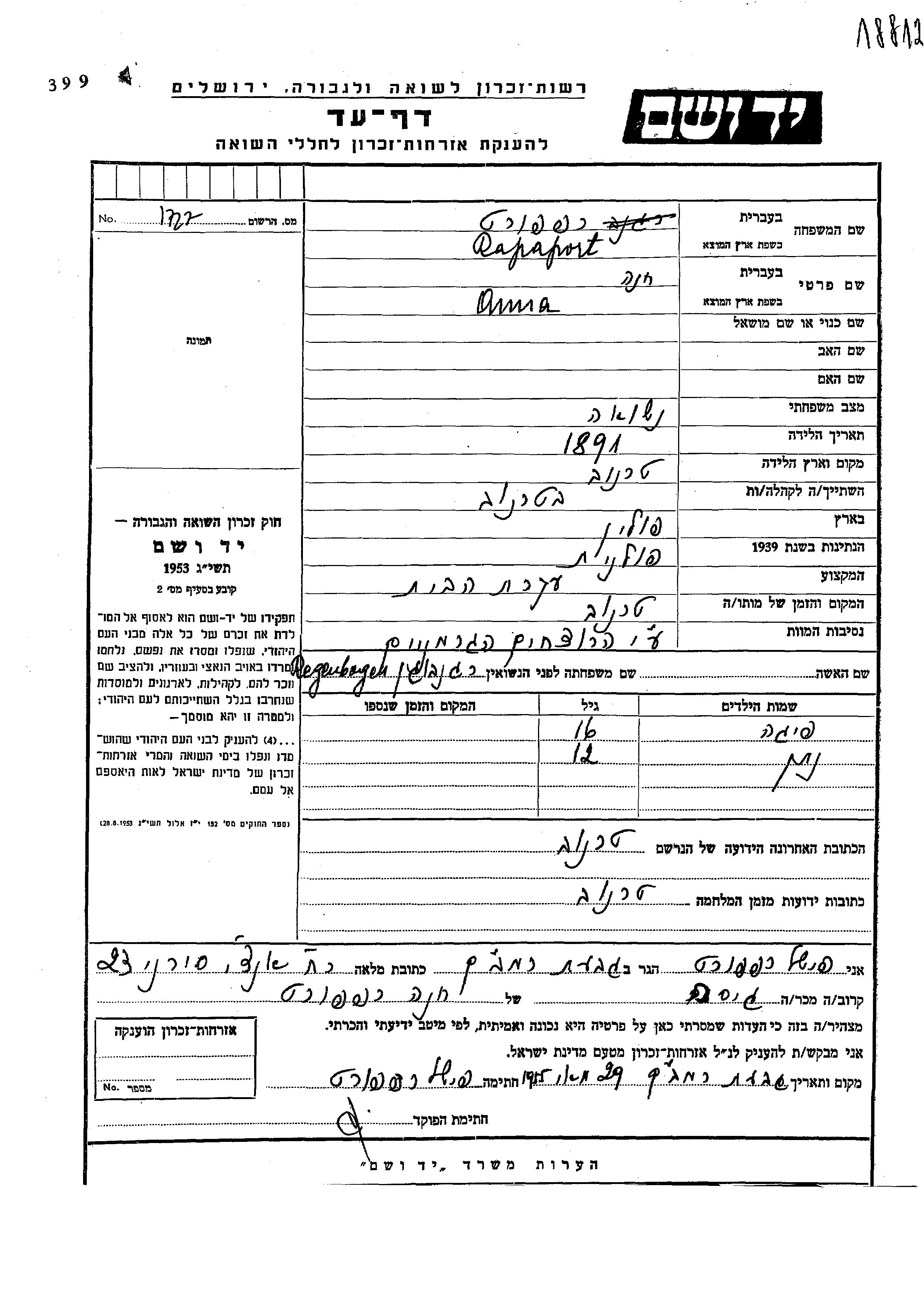 Yad Vashem - Gedenkblätter Sammlung
