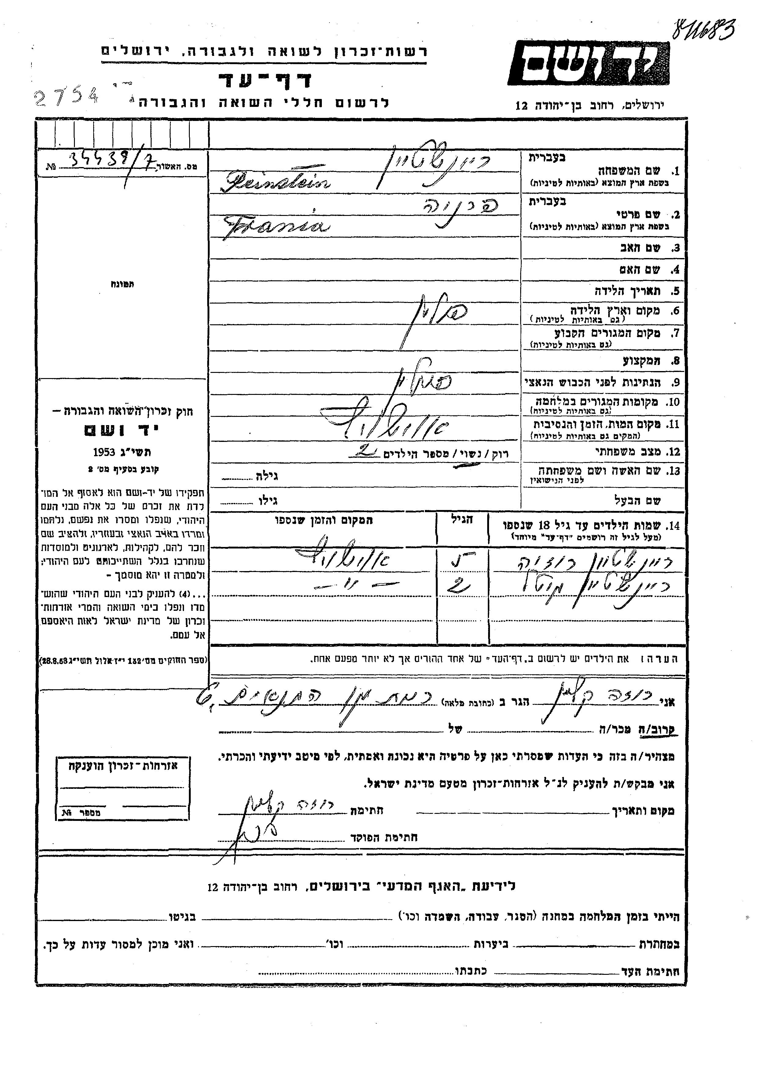 Rozia Reinstein wurde Sie war die Tochter von Frania. Sie war Kind.