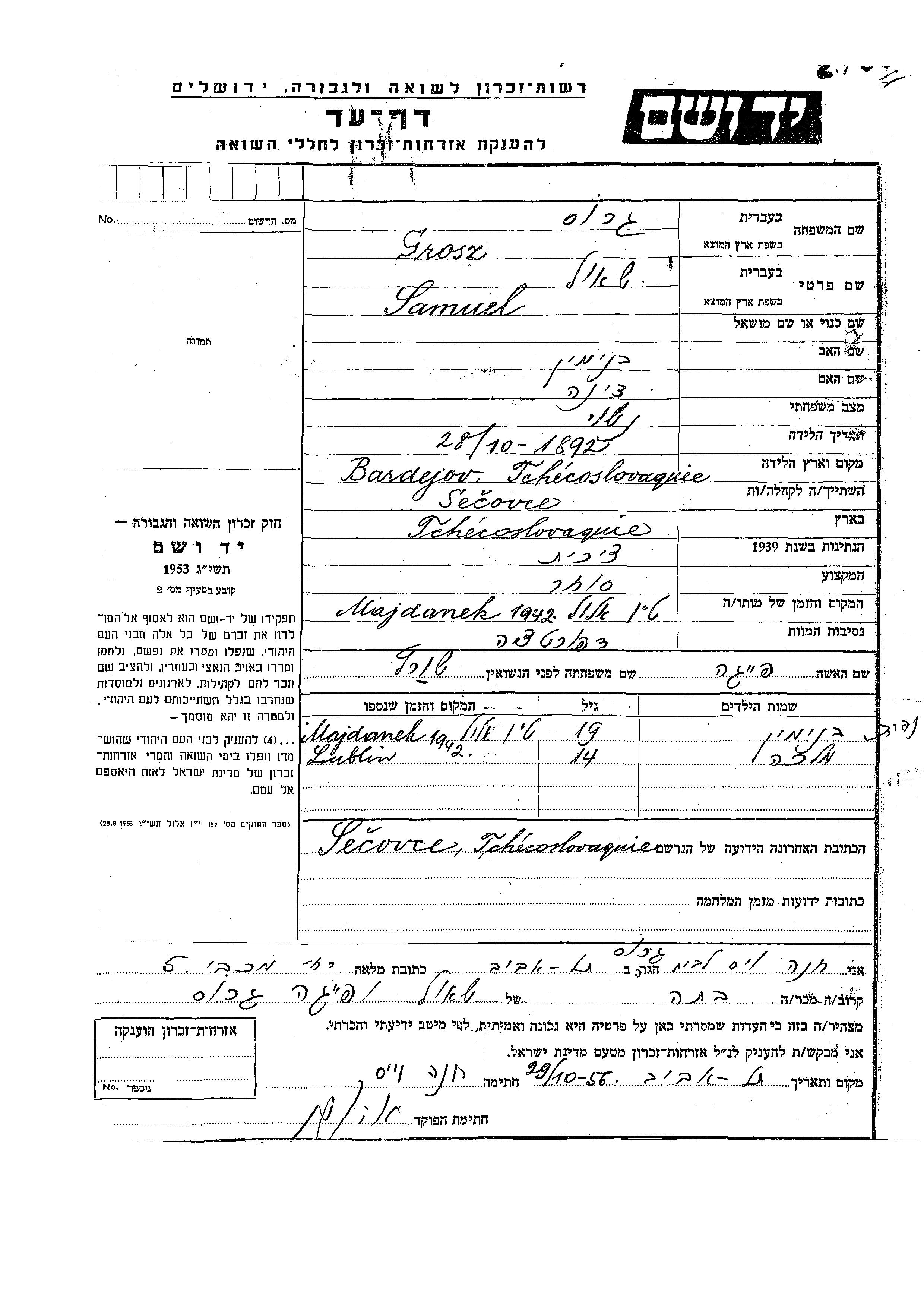 Malka Grosz wurde Sie war die Tochter von Shaul Samuel und Feiga, geb. Shvartz. Sie war Kind.