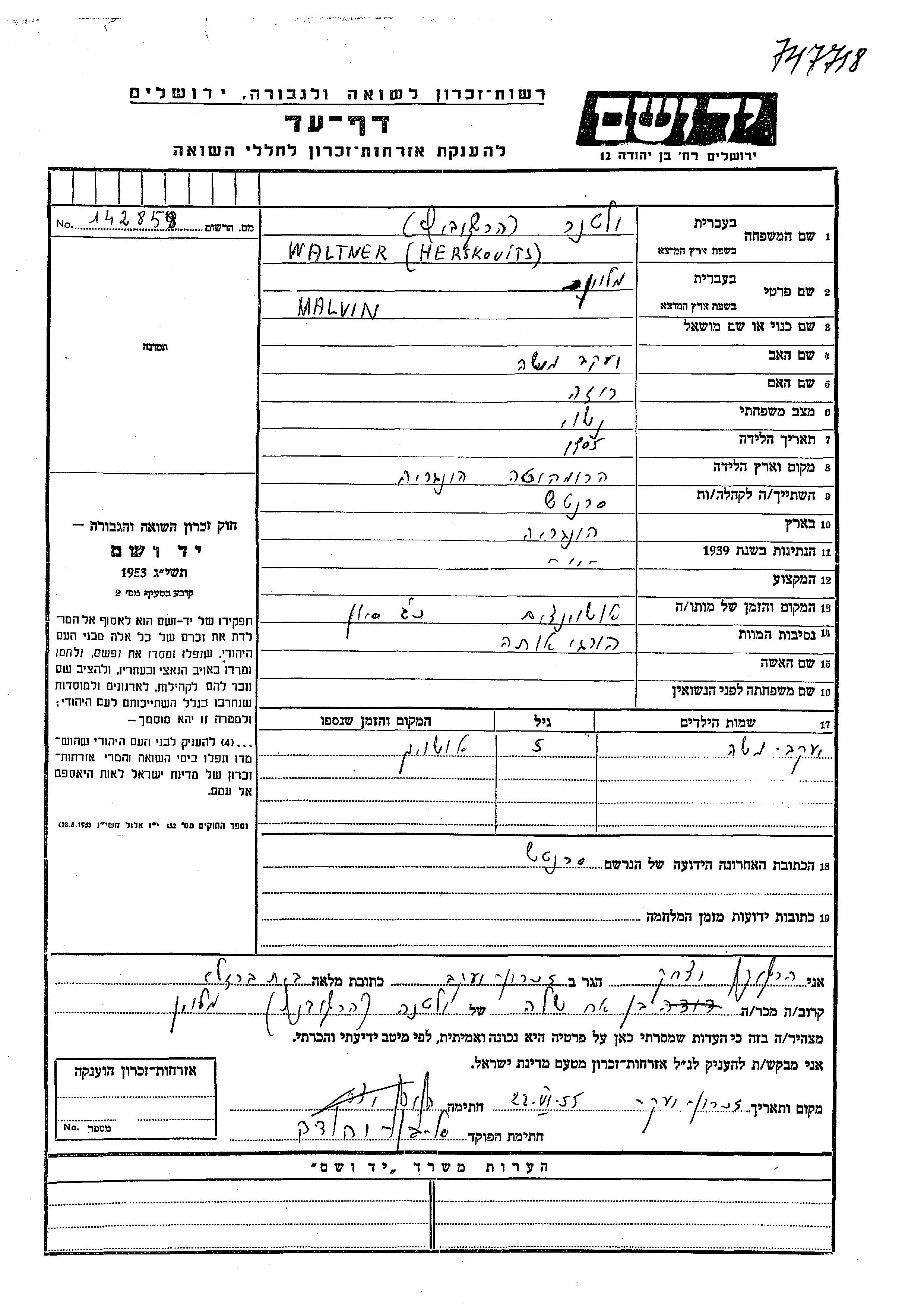 Yaakov Moshe Waltner wurde Er war der Sohn von Malvin, geb. Herskovits. Er war Kind. Vor dem Zweiten Weltkrieg lebte er in Serenc.