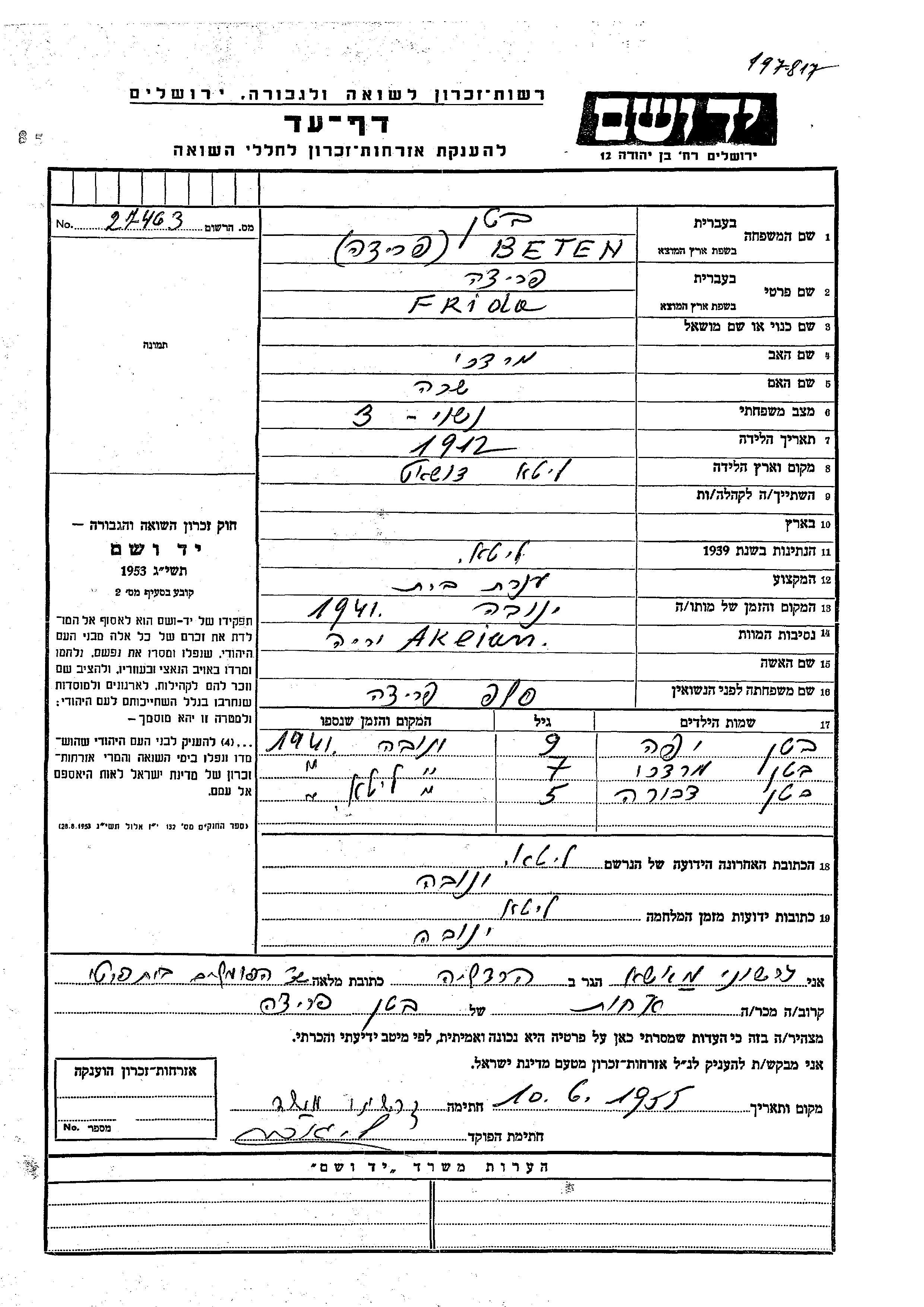 Yafa Beten wurde Sie war die Tochter von Frida. Sie war Kind. Während des Krieges war sie in Janova, Litauen.