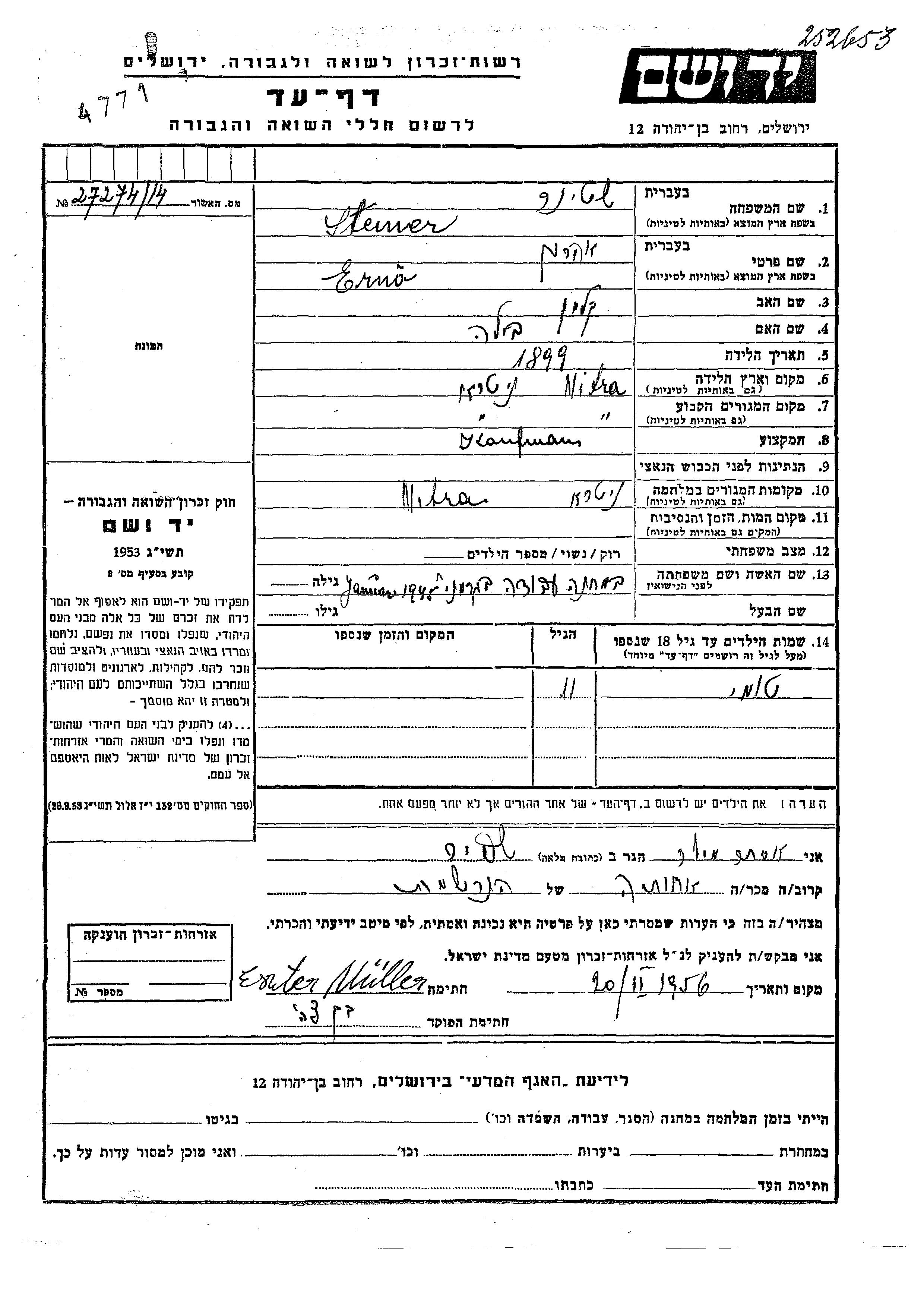 Tomi Stemer Shteiner wurde Er war der Sohn von Erno Aharon. Er war Kind. Vor dem Zweiten Weltkrieg lebte er in Nitra, Tschechoslowakei. Während des Krieges war er in Nitra, Tschechoslowakei.