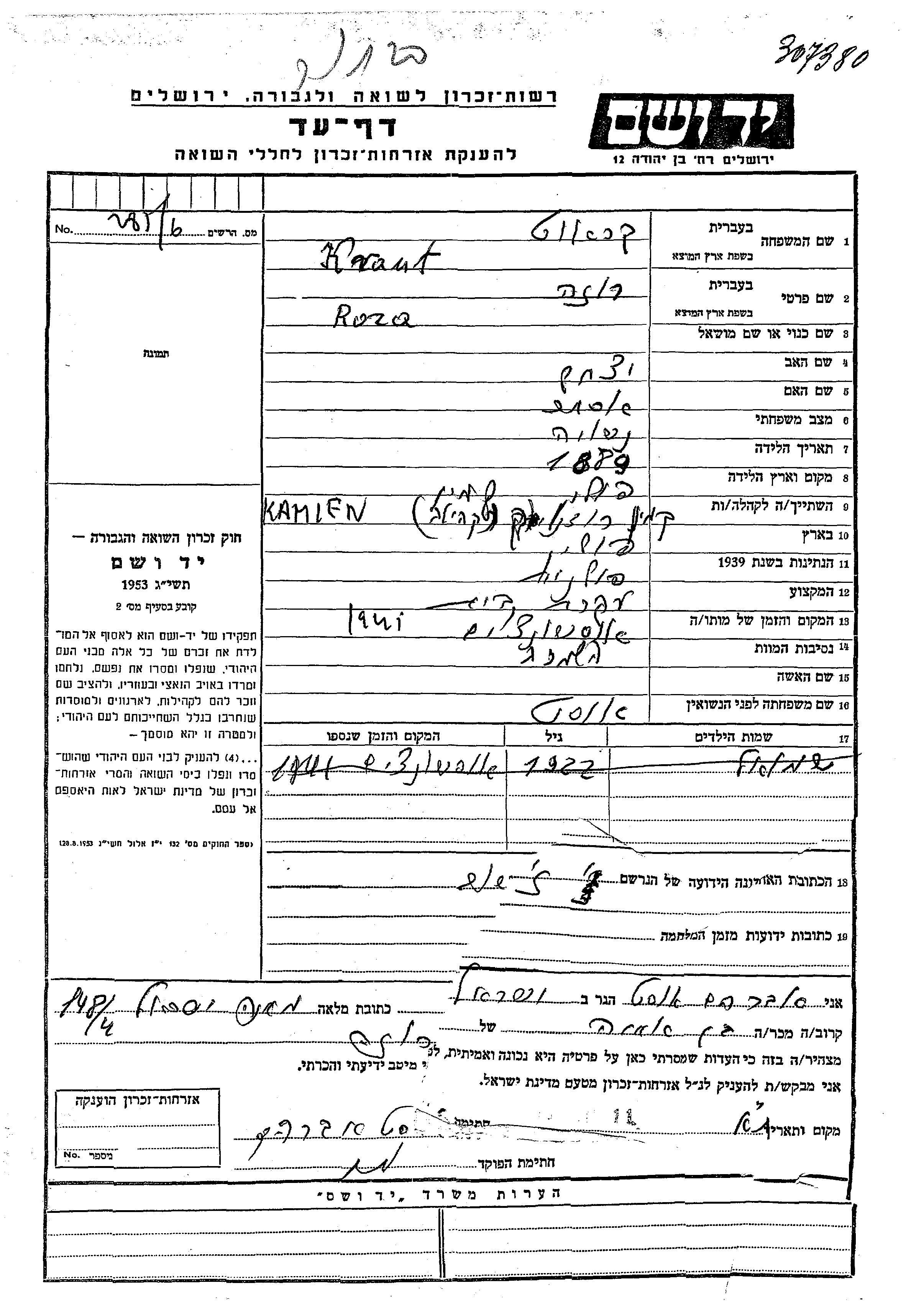 Shmuel Zawieruchi Kraut wurde im Jahr 1922 geboren. Er war der Sohn von Roza, geb. Ost. Vor dem Zweiten Weltkrieg lebte er in Kamien, Polen.