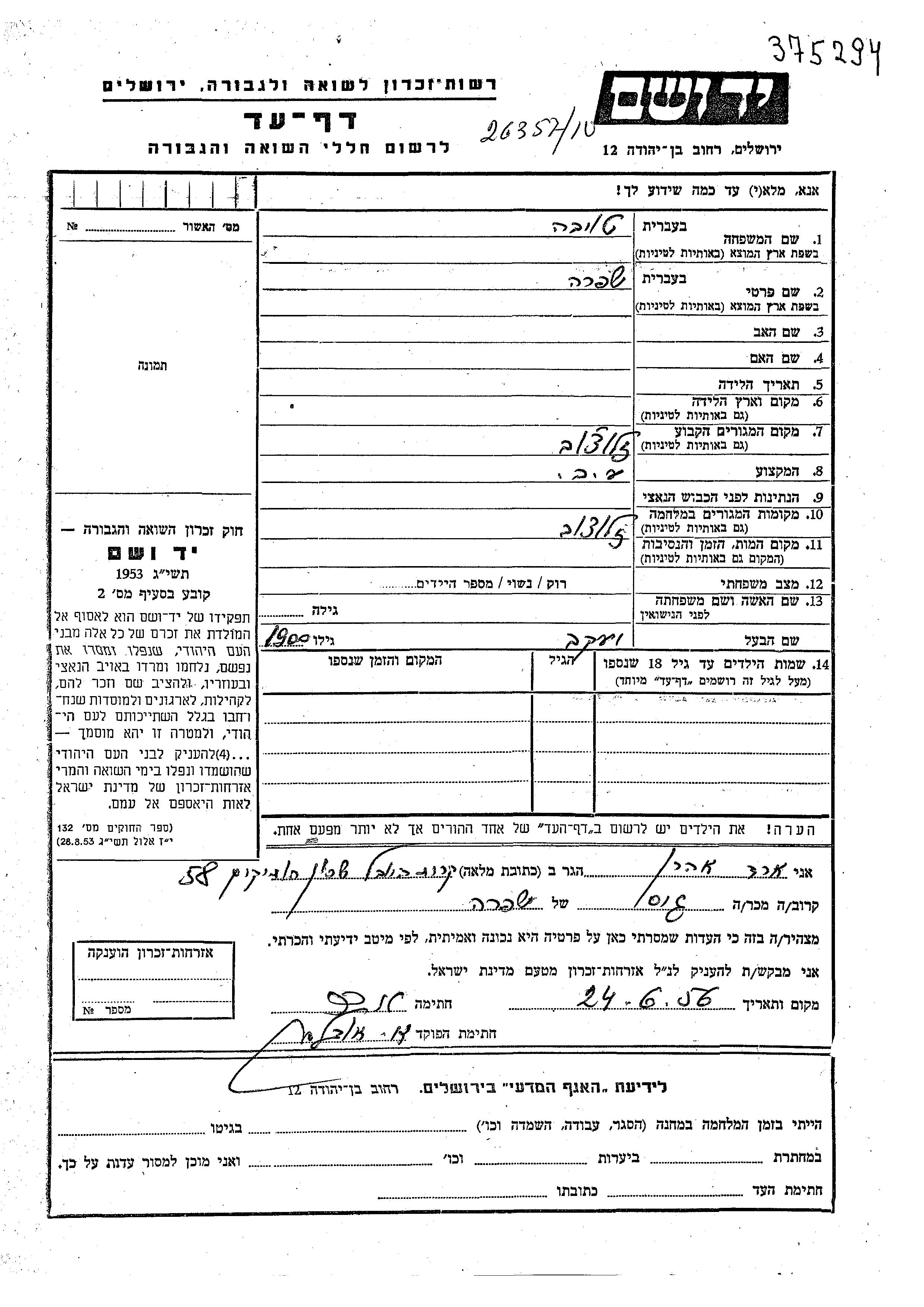 Shifra Tuba. Sie war Hausfrau. Vor dem Zweiten Weltkrieg lebte sie in Zloczow, Polen. Während des Krieges war sie in Zloczow, Polen.