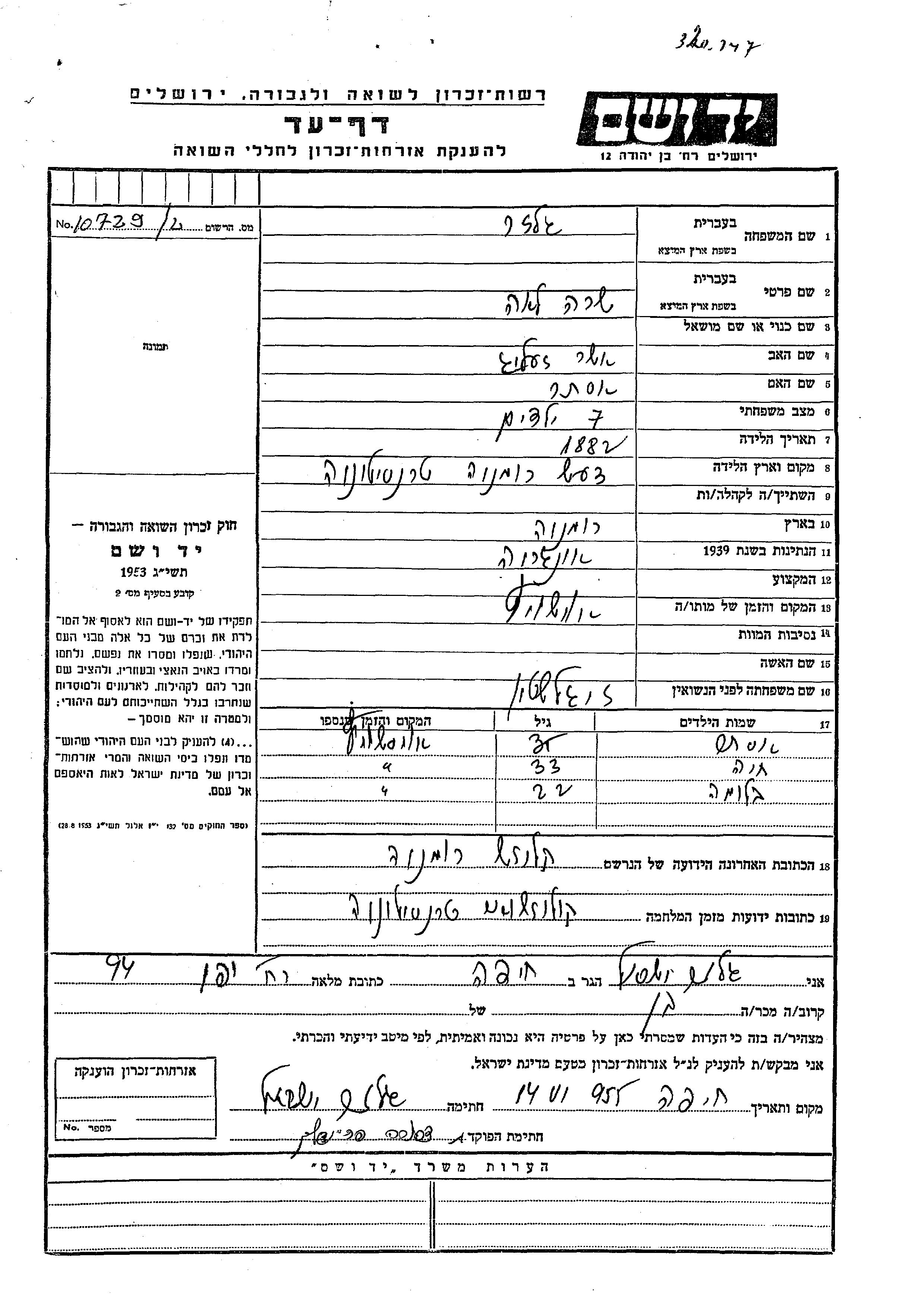 Ester Glazer wurde Sie war die Tochter von Sara Lea, geb. Zigelshtein. Während des Krieges war sie in Transylvania, Rumänien.