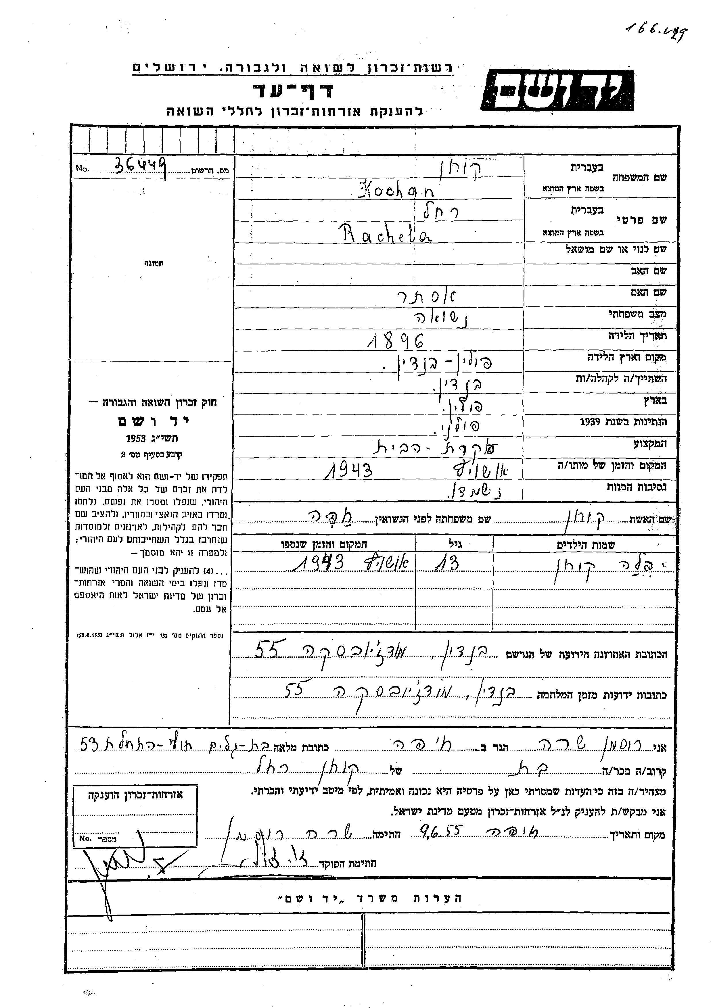 Fela Kochan wurde Sie war die Tochter von Khava und Rachela, geb. Kohen. Sie war Kind. Vor dem Zweiten Weltkrieg lebte sie in Będzin, Polen. Während des Krieges war sie in Będzin, Polen.