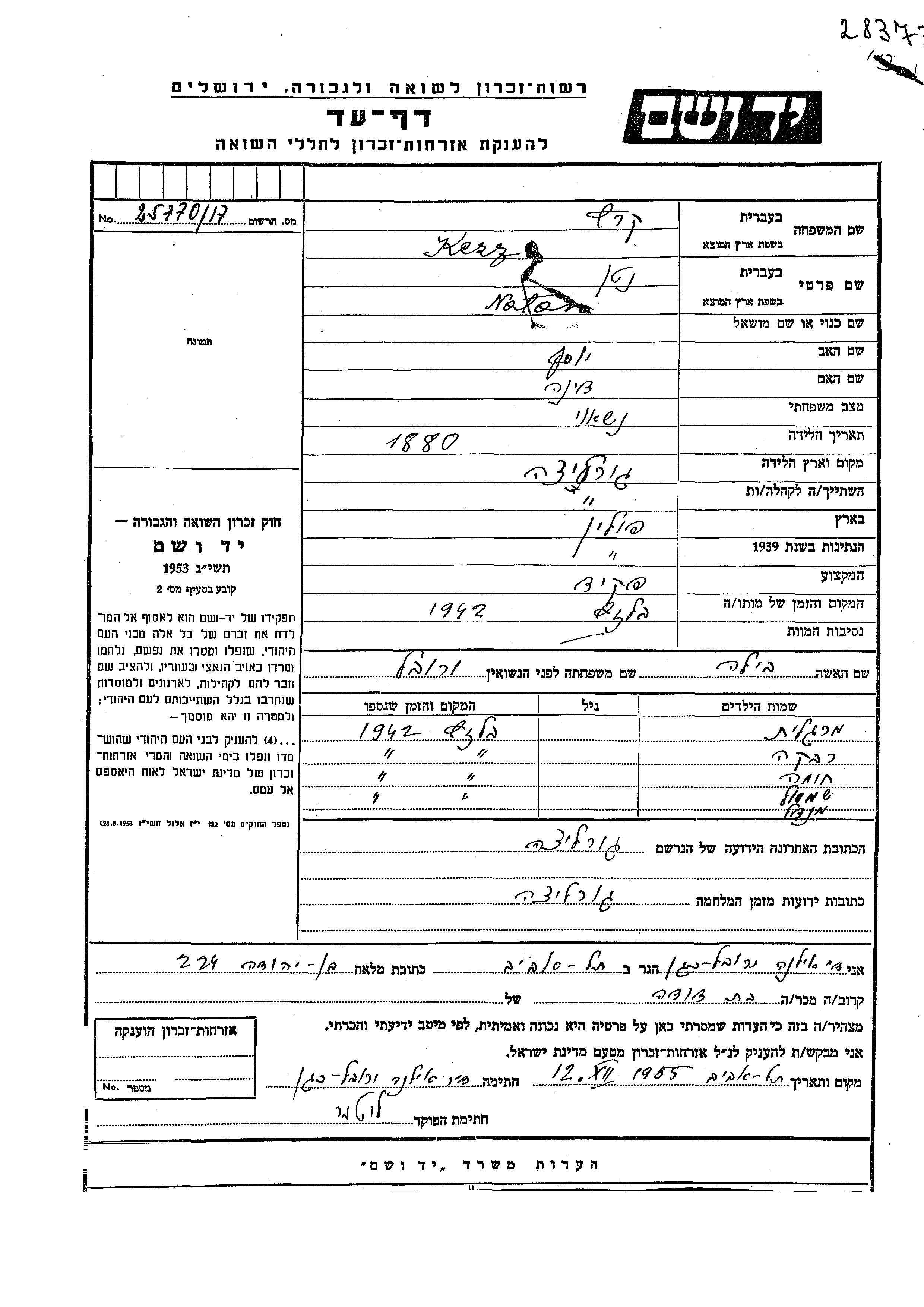 Mendel Kerz Kretz wurde Er war der Sohn von Natan und Bila, geb. Vrubel. Er war Kind. Vor dem Zweiten Weltkrieg lebte er in Gorlice, Polen. Während des Krieges war er in Gorlice, Polen.