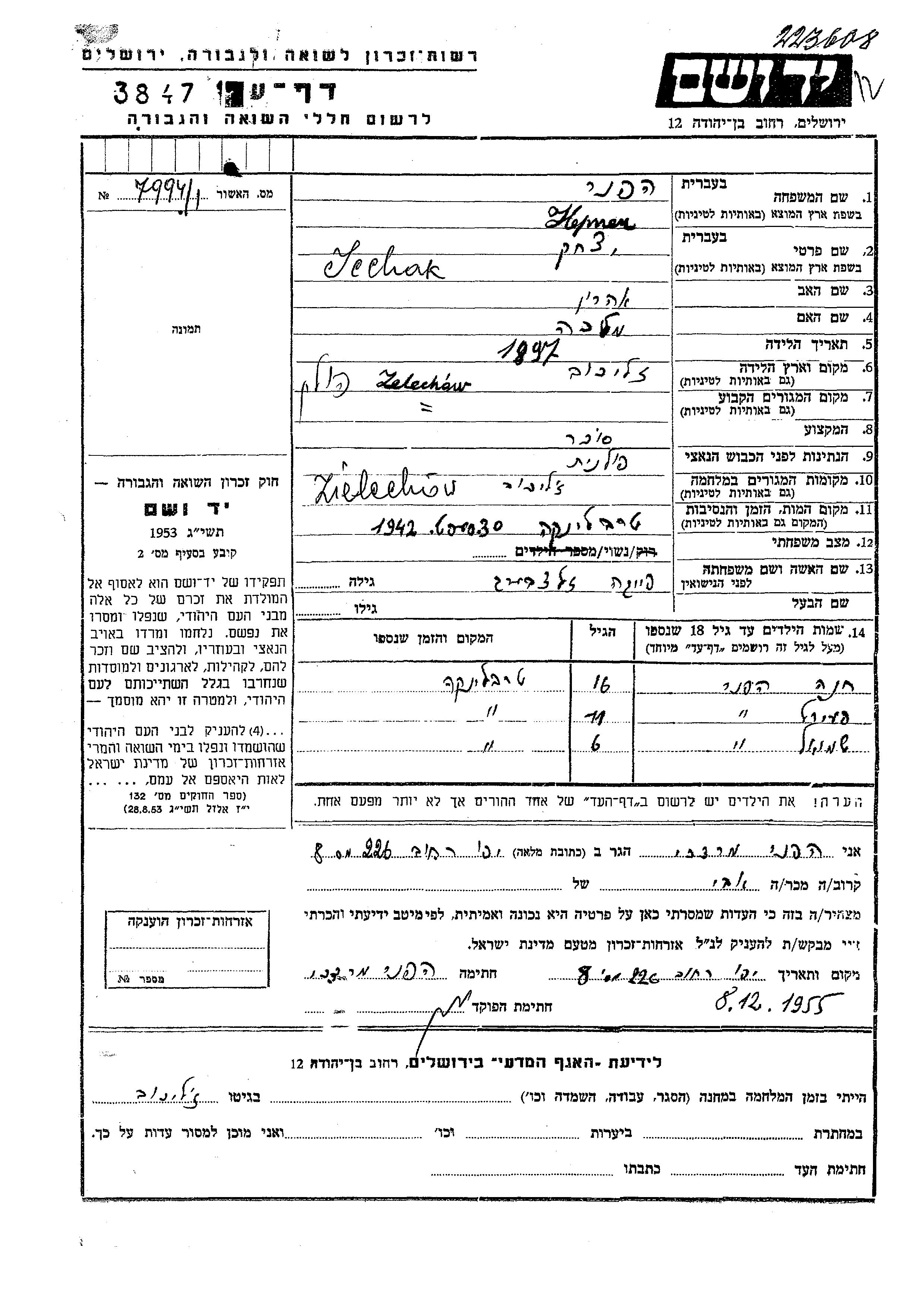 Hafner Perel Zelechow, Polen Gedenkblatt