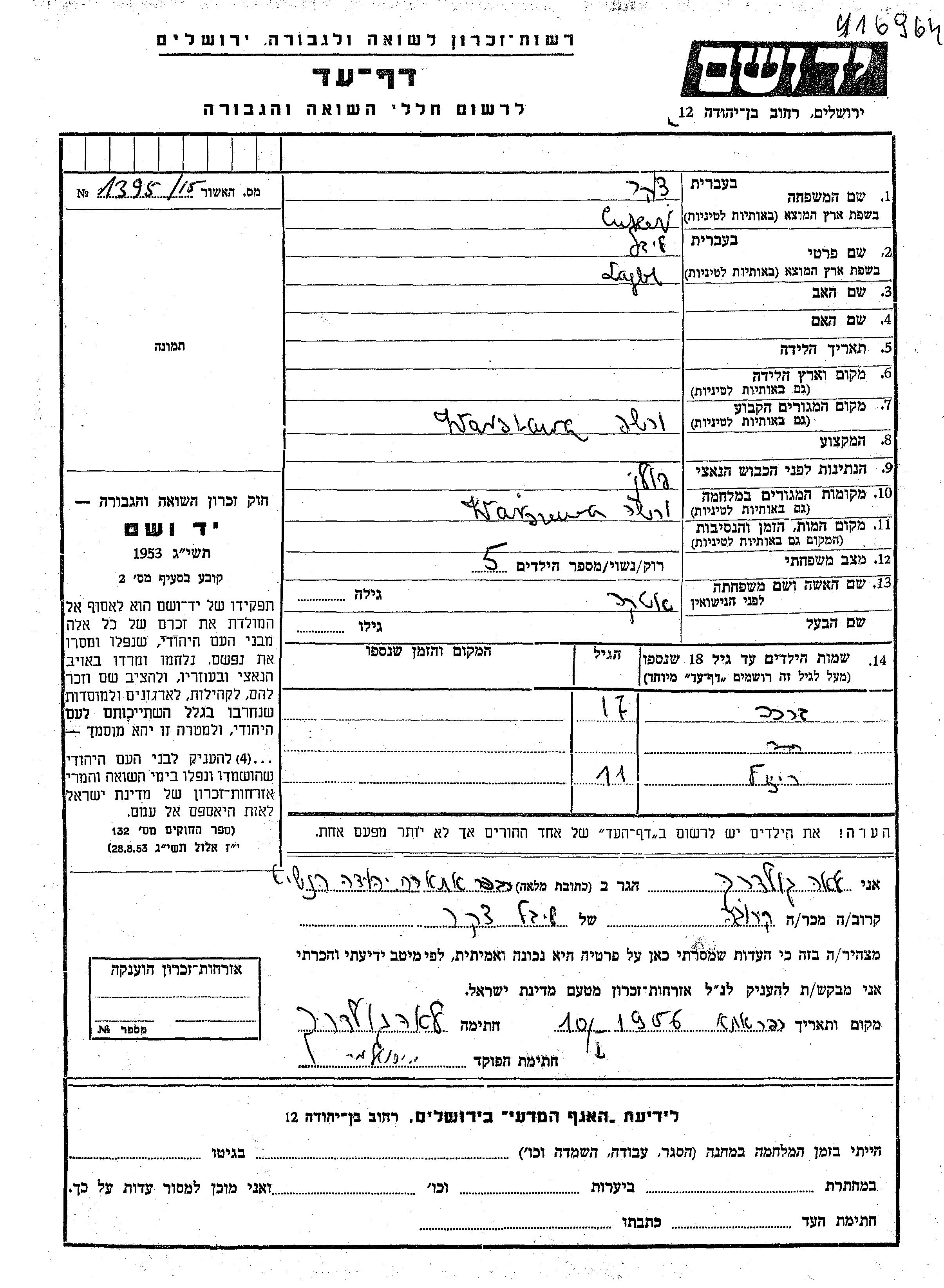Reizl Cuker wurde Sie war die Tochter von Lajbl und Etka. Sie war Kind. Vor dem Zweiten Weltkrieg lebte sie in Warsaw, Polen. Während des Krieges war sie in Warsaw, Polen.