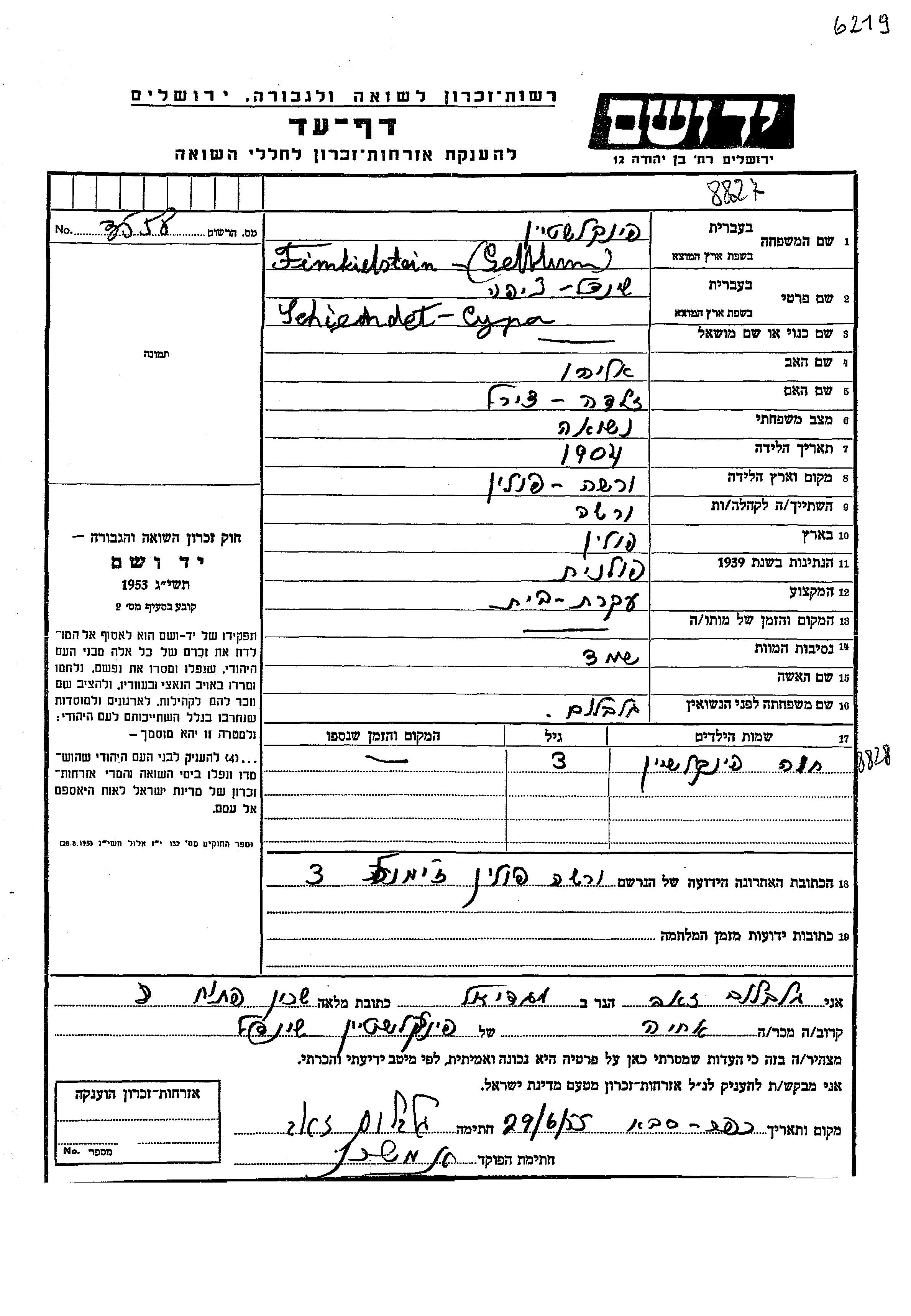 Finkielstain Khava Polen Gedenkblatt