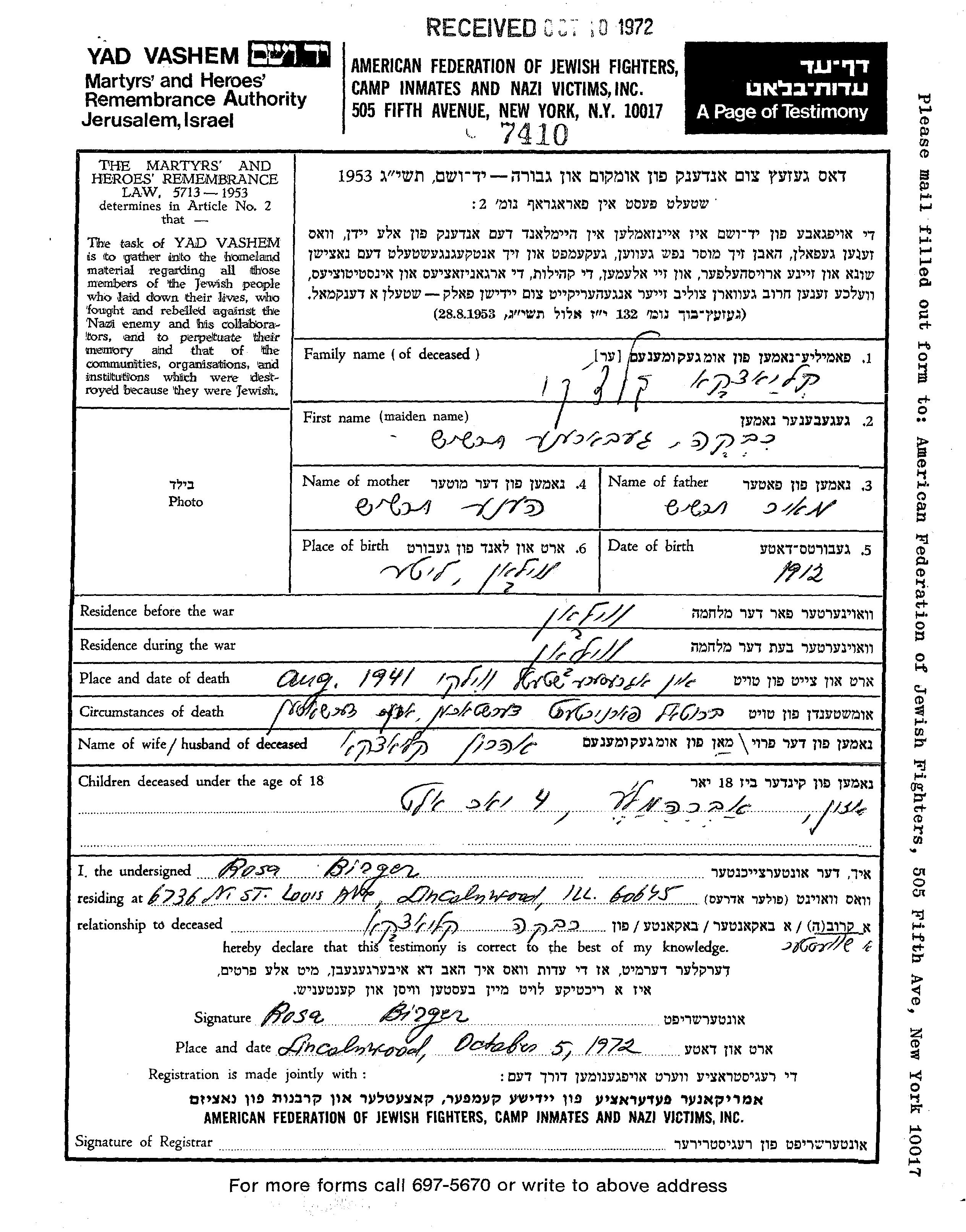 Avraham Kaletzki wurde Er war der Sohn von Aharon und Rivka, geb. Tarshish. Er war Kind. Vor dem Zweiten Weltkrieg lebte er in Vilan, Litauen. Während des Krieges war er in Vilan, Litauen.