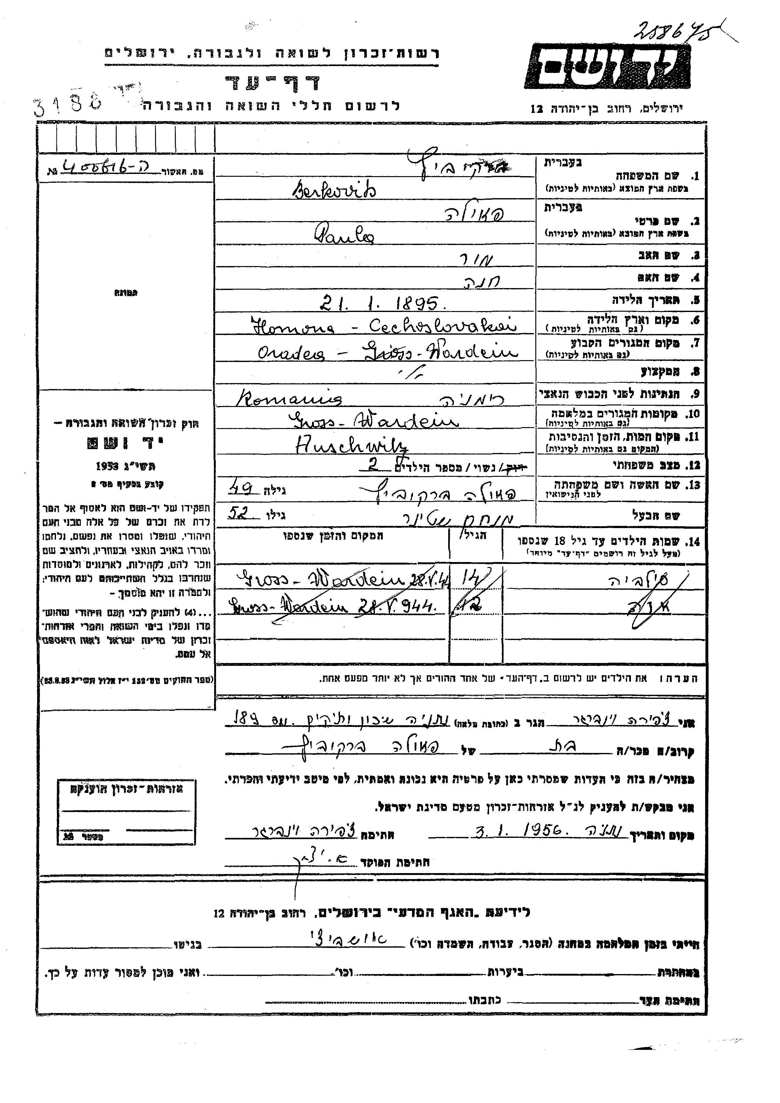Berkovits Shteiner Silvia Oradea, Rumänien Gedenkblatt