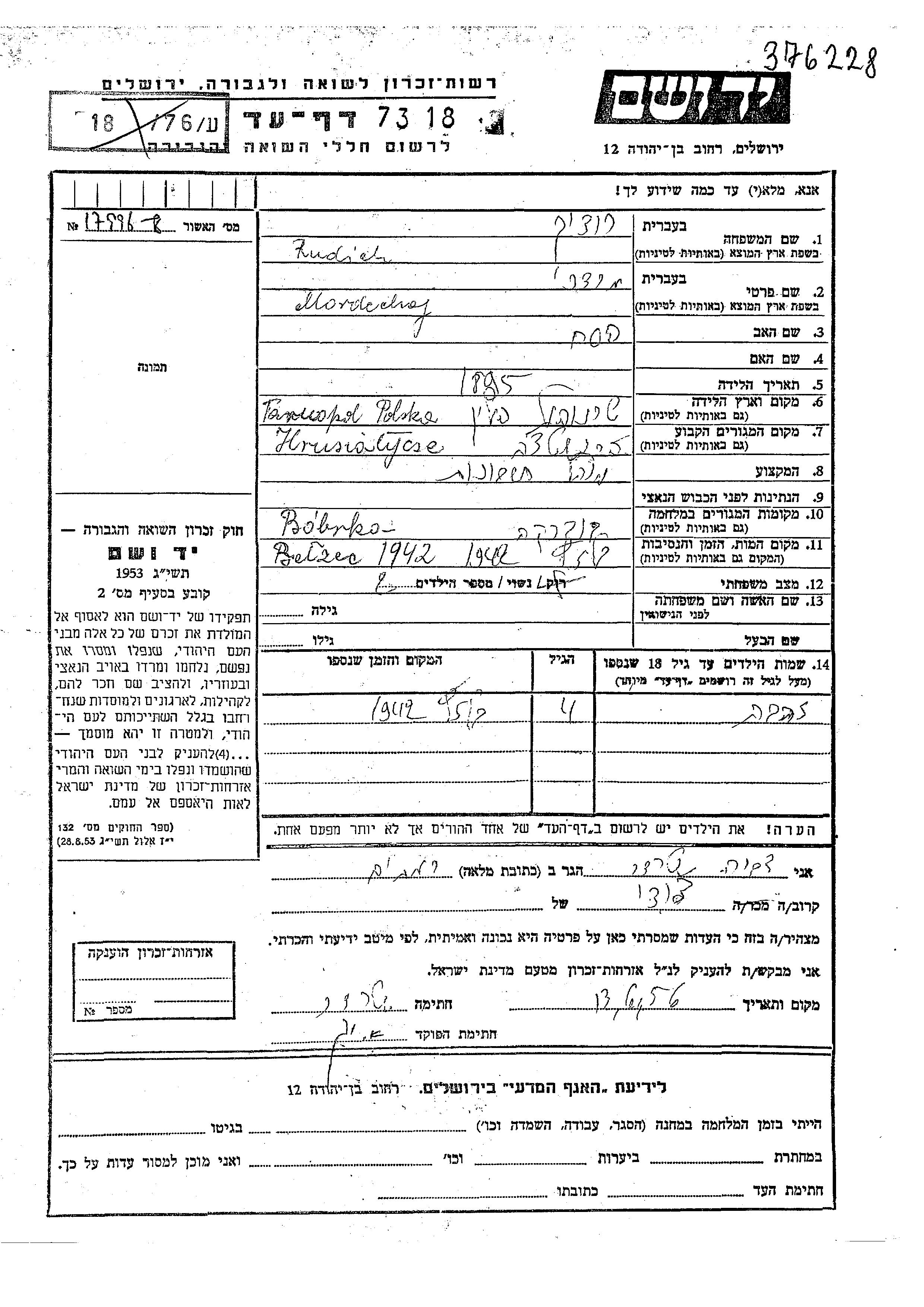 Rudich Zahava Hrusiatycze, Polen Gedenkblatt