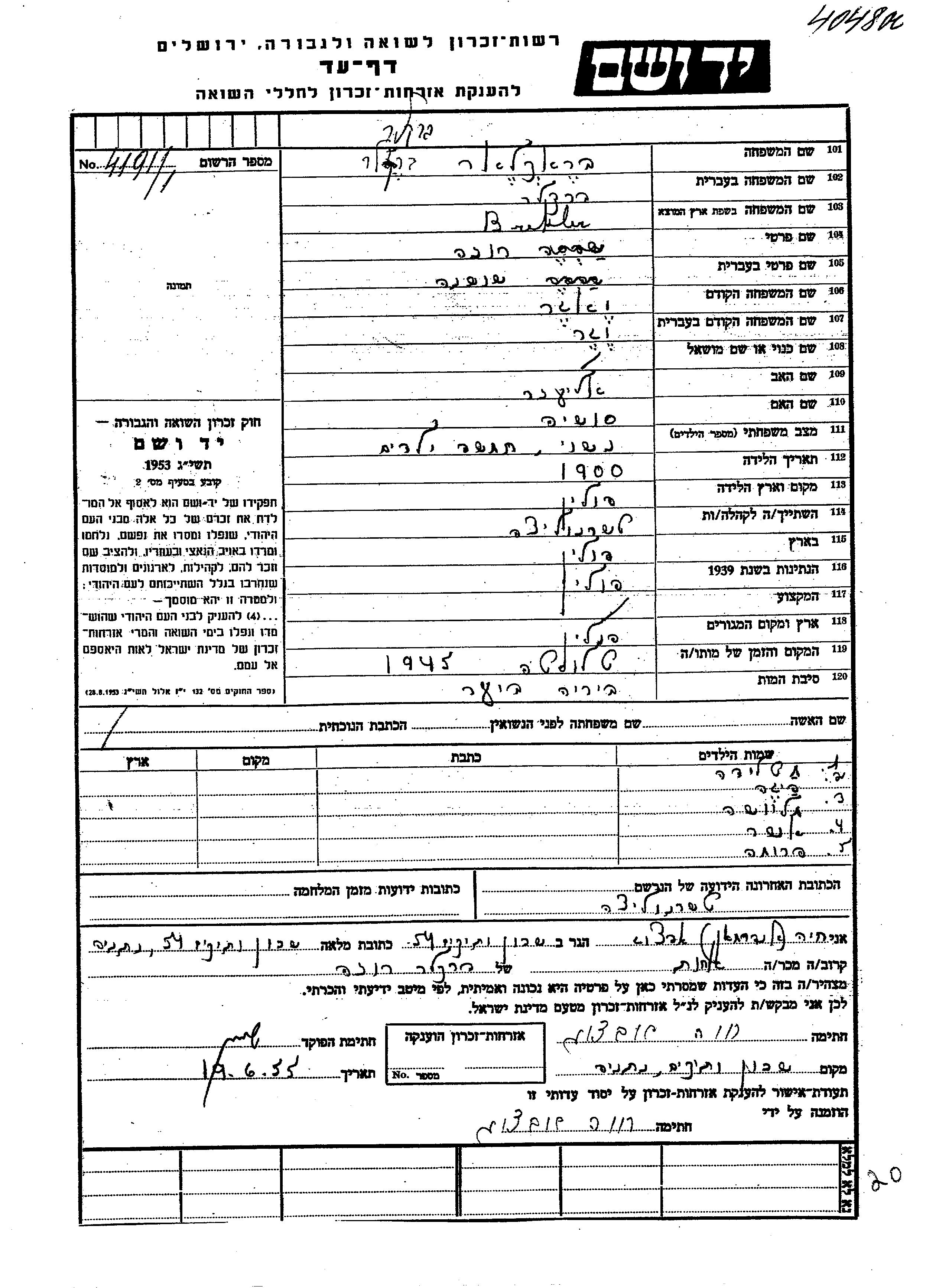 מלוושה Brekler wurde Sie war die Tochter von Shoshana Roza, geb. Ieger. Sie war Kind. Vor dem Zweiten Weltkrieg lebte sie in Czernolica, Polen. Während des Krieges war sie in Czernolica, Polen.