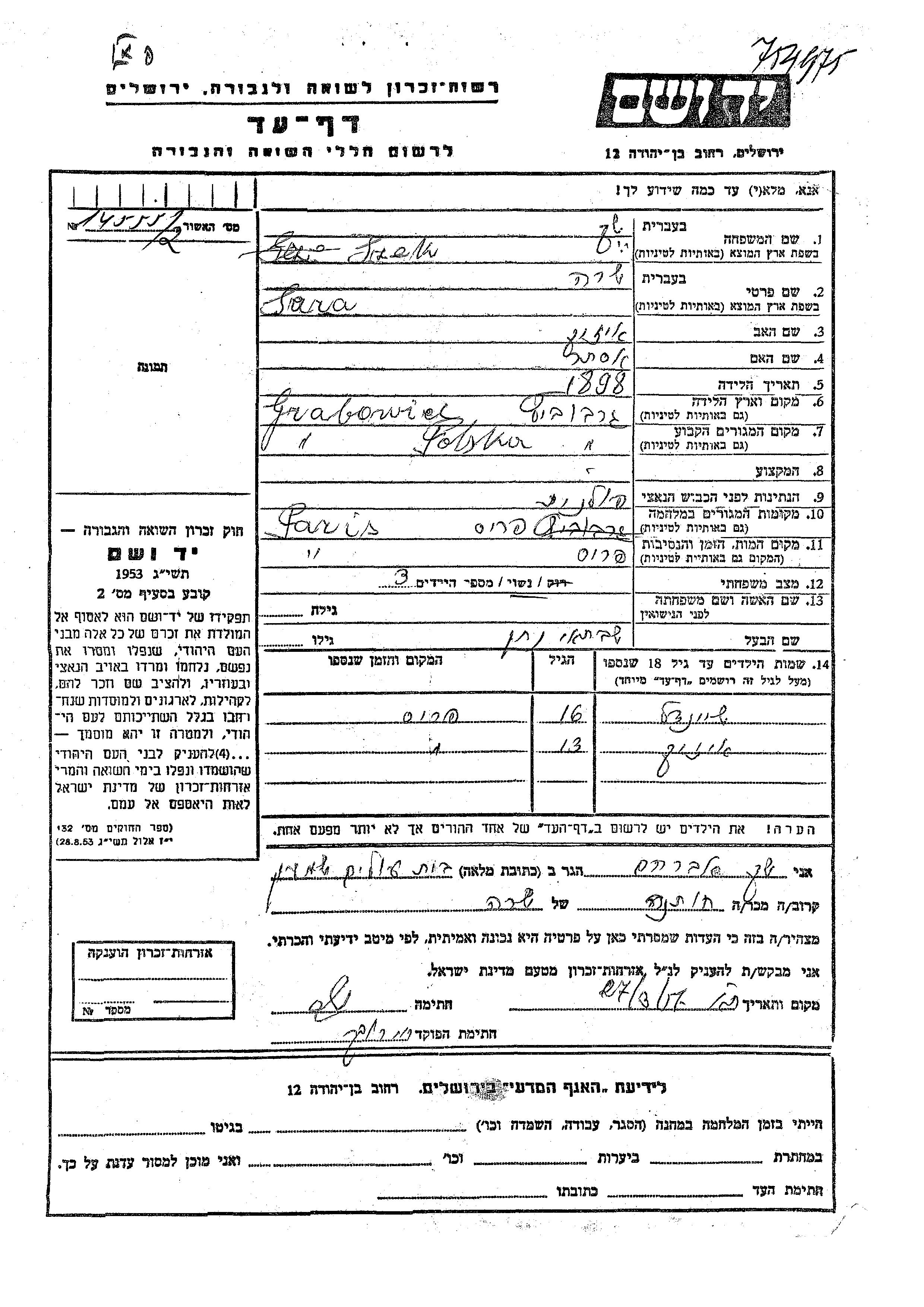 Szek Sheindl Grabowiec, Polen Gedenkblatt