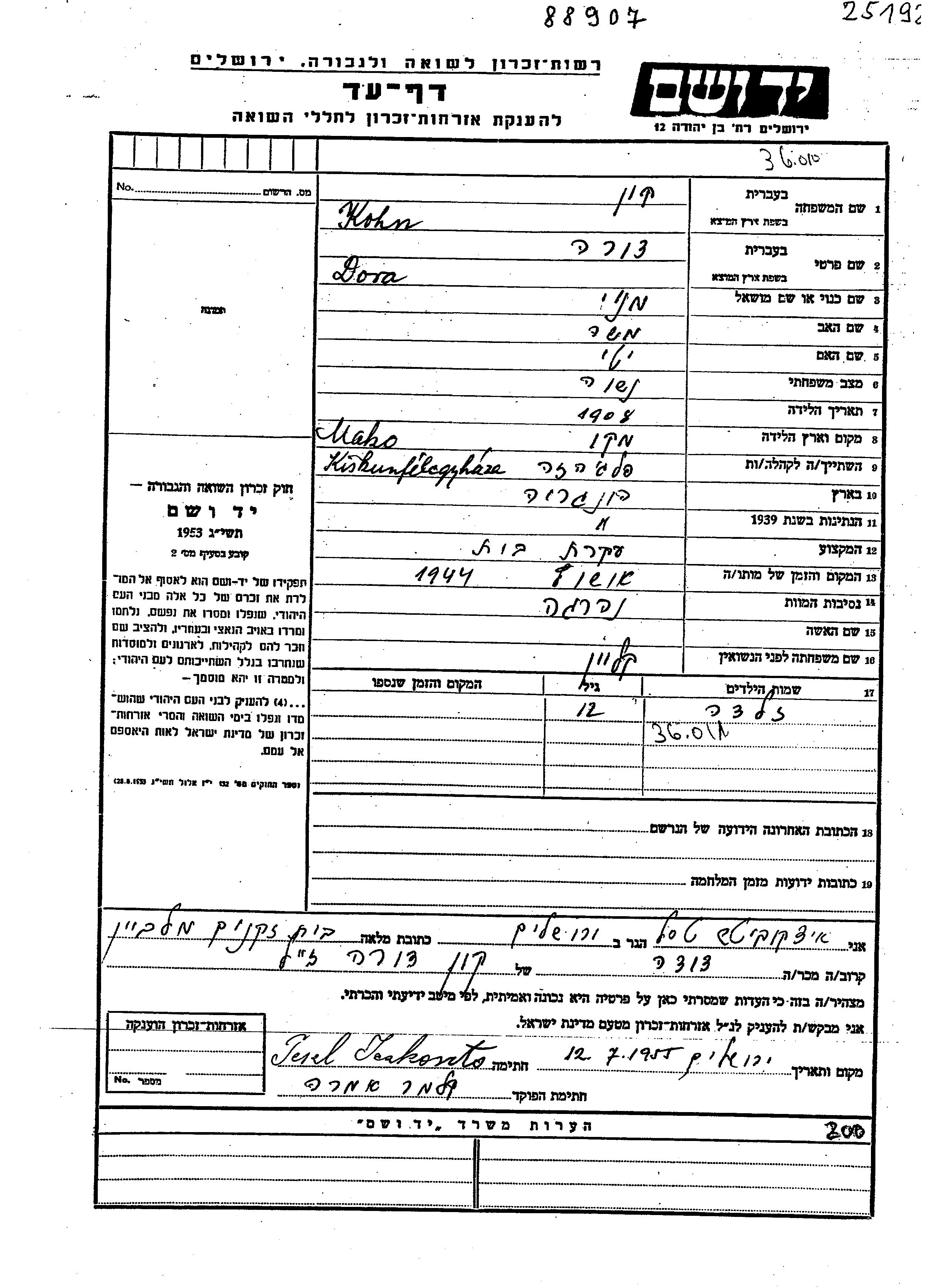 Zelda Kun Kohn wurde Sie war die Tochter von Dora Man Maria, geb. Klein. Sie war Kind. Vor dem Zweiten Weltkrieg lebte sie in Kiskunfelegyhaza, Ungarn. Während des Krieges war sie in Ungarn.