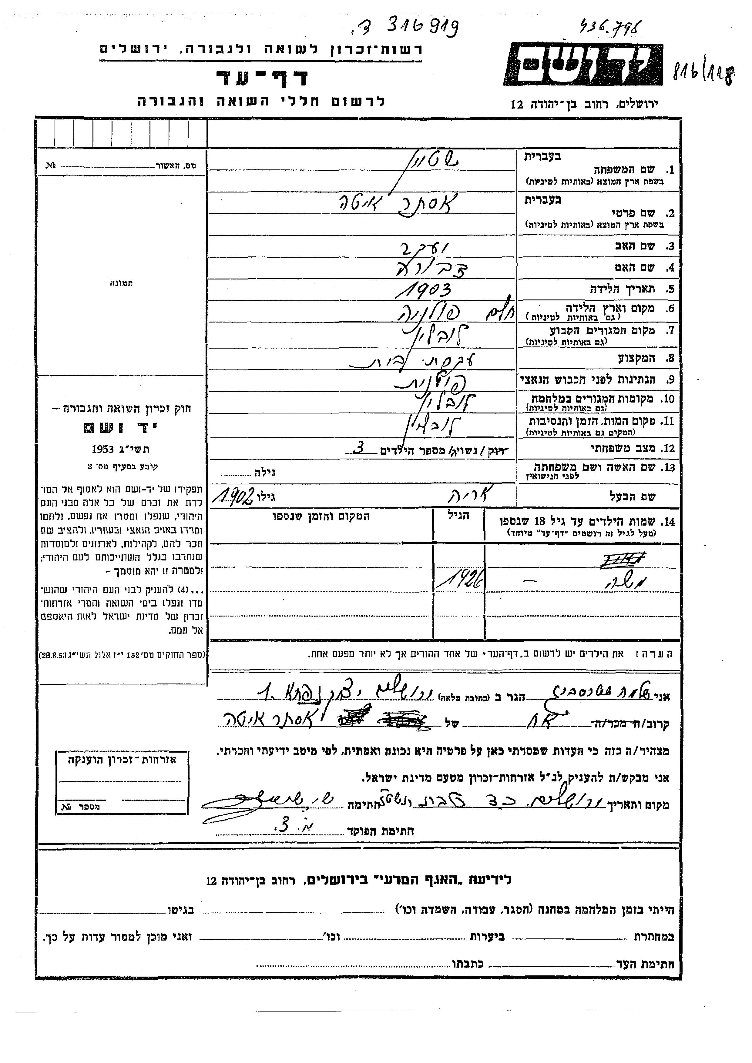 Shtein Moshe 1926 Lublin, Polen Gedenkblatt