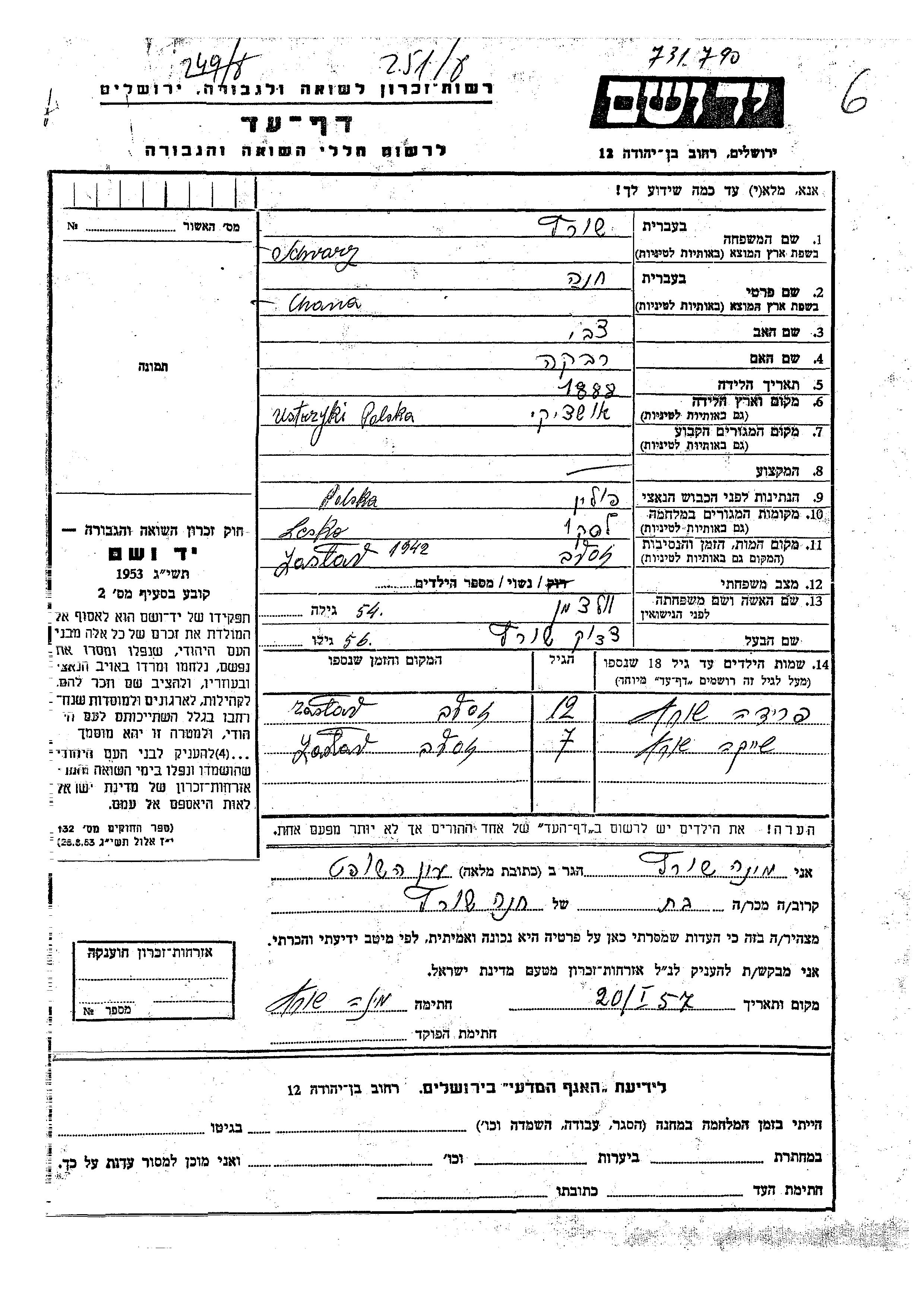 Frida Schvarz wurde Sie war die Tochter von Tzadok und Chana, geb. Valdman. Sie war Kind. Während des Krieges war sie in Lesko, Polen.