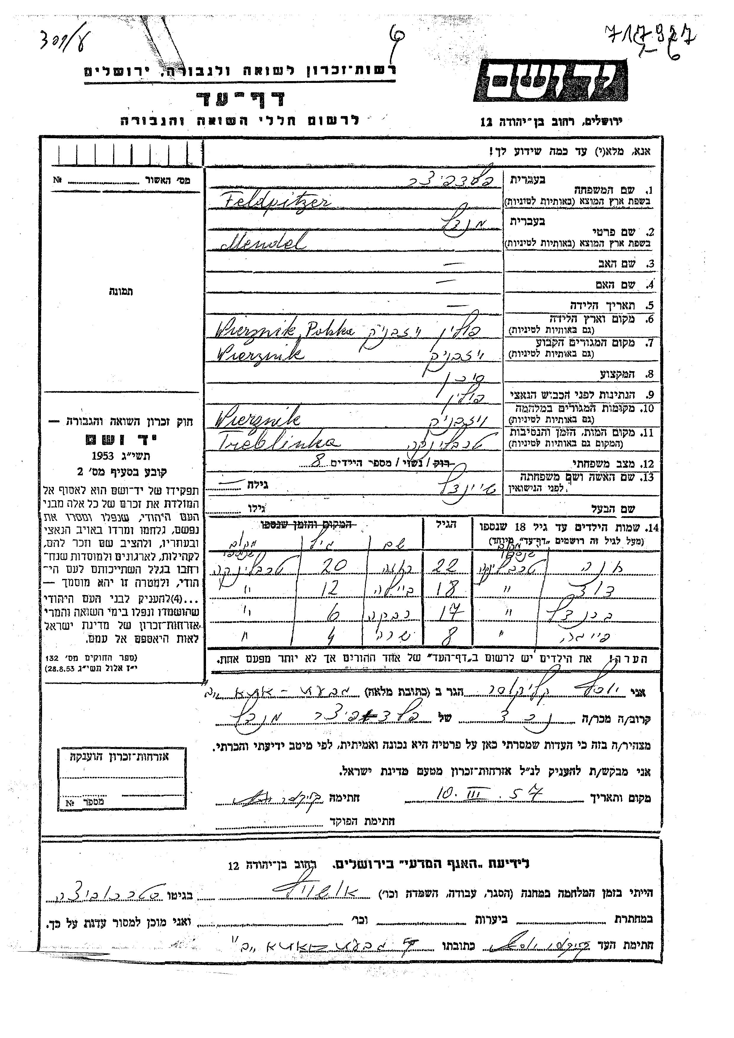 Khana Feldpitzer wurde Sie war die Tochter von Mendel und Sheindl. Vor dem Zweiten Weltkrieg lebte sie in Wierzbnik, Polen. Während des Krieges war sie in Wierzbnik, Polen.