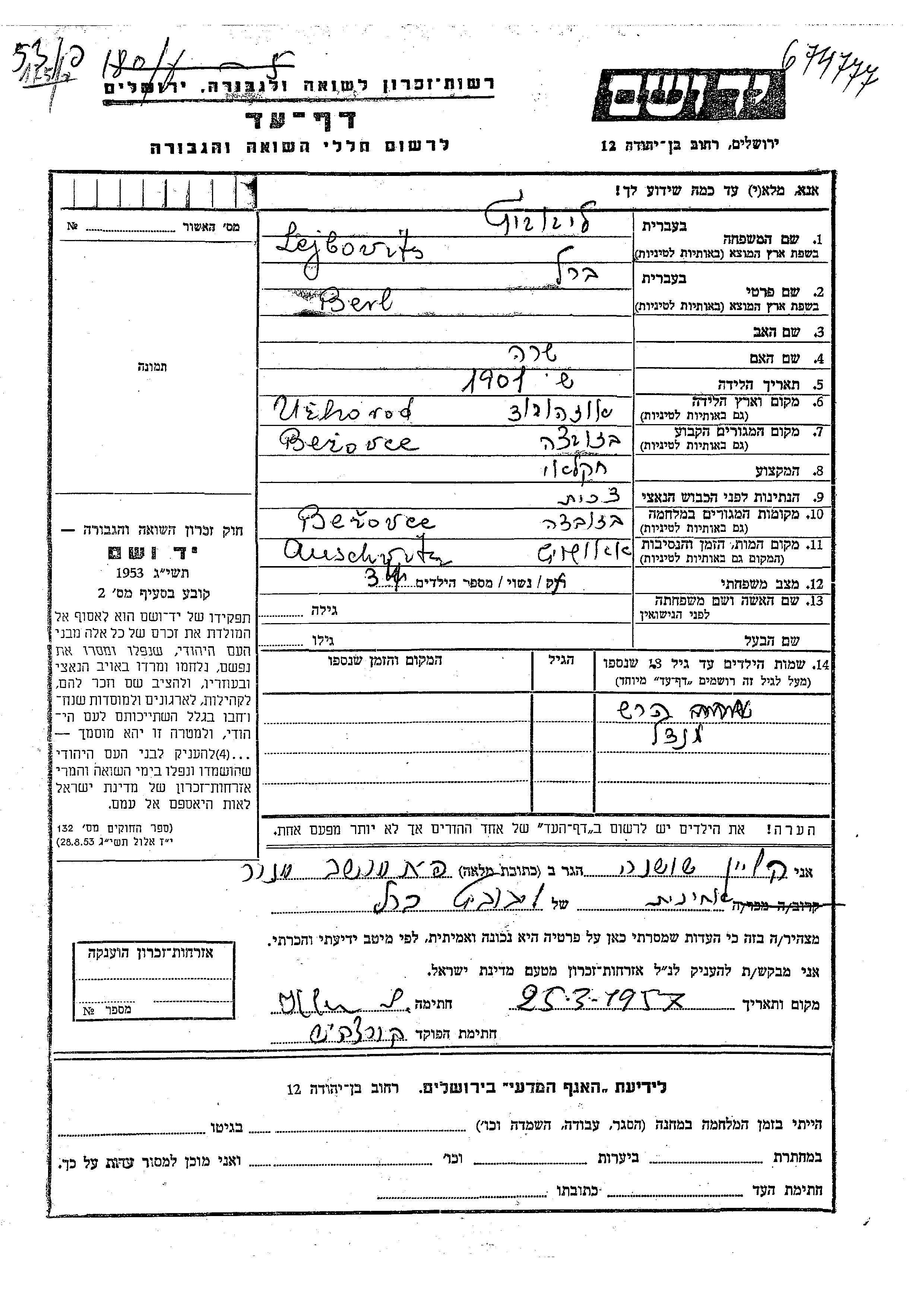Hersh Lejbovits wurde Er war der Sohn von Berl. Er war Kind. Vor dem Zweiten Weltkrieg lebte er in Bezovce, Tschechoslowakei. Während des Krieges war er in Bezovce, Tschechoslowakei.