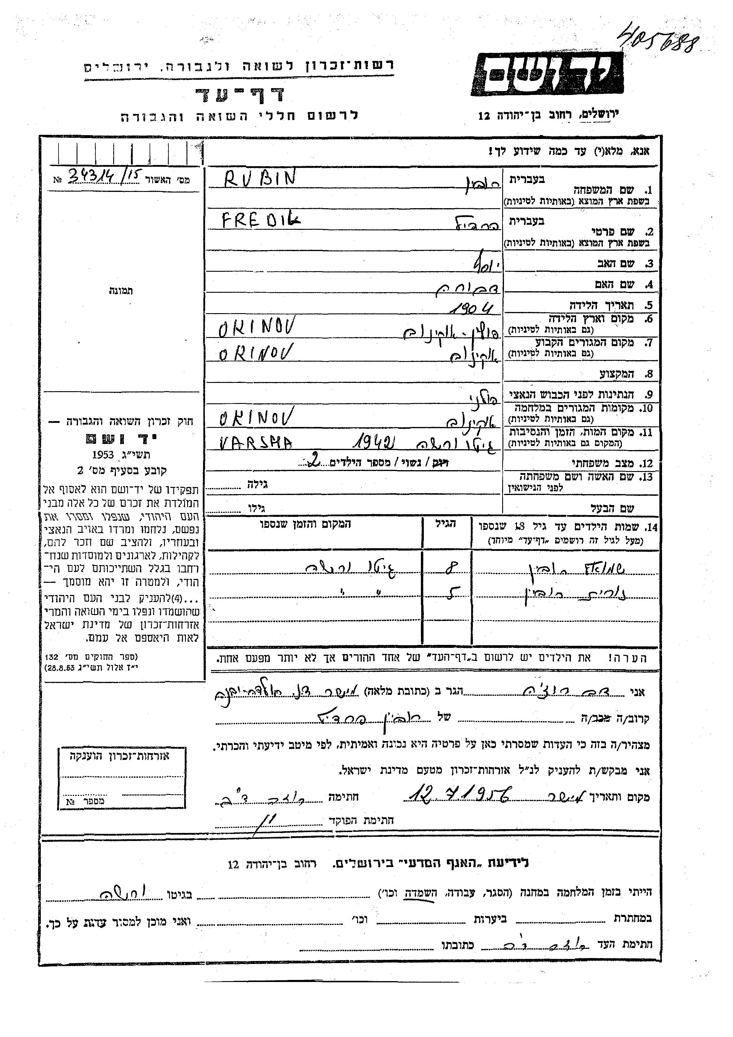 Rubin Nurit Okinov, Polen Gedenkblatt