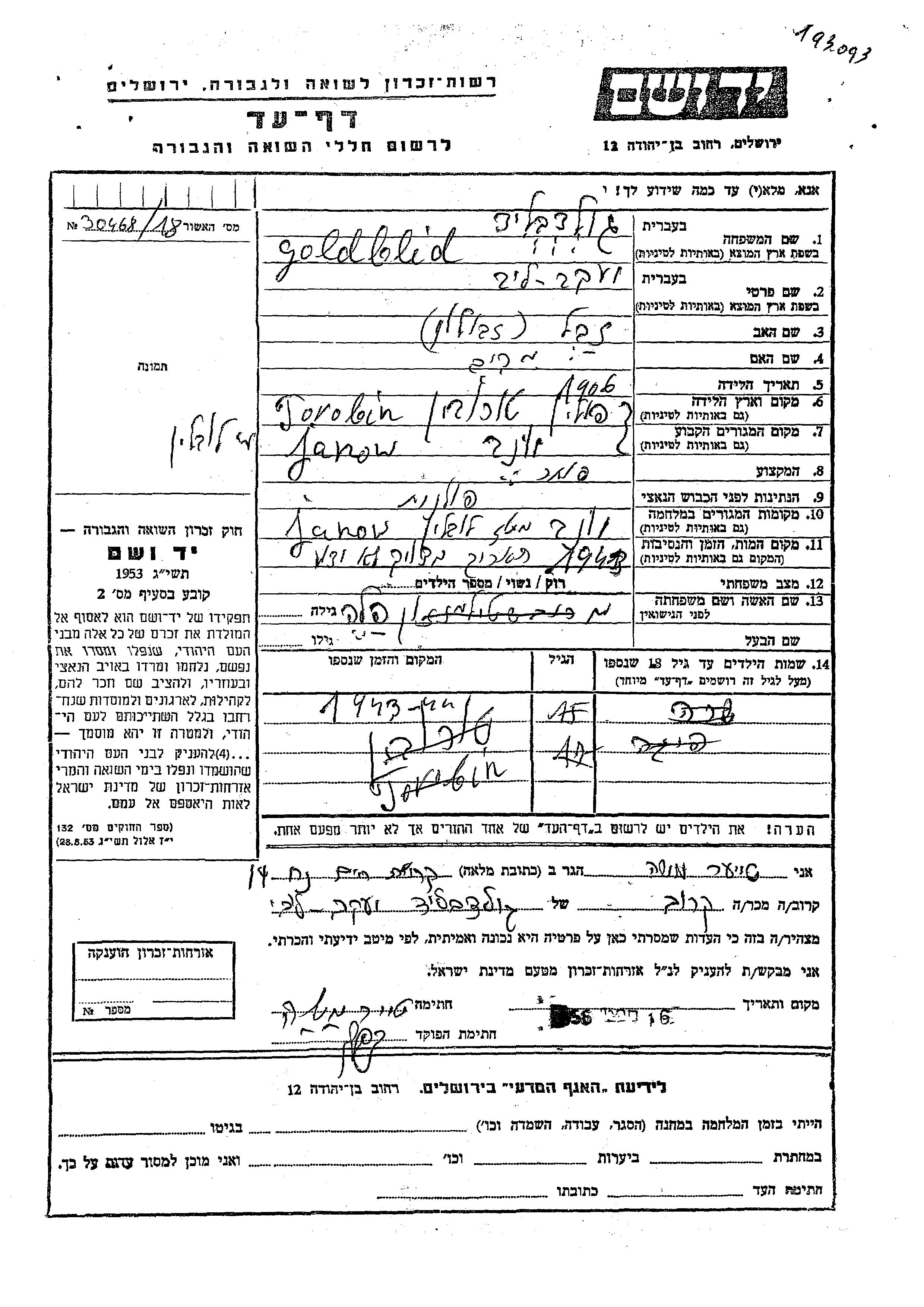 Sara Goldblid wurde Sie war die Tochter von Yaakov Leib und Fela. Sie war Kind. Vor dem Zweiten Weltkrieg lebte sie in Janow, Polen. Während des Krieges war sie in Janow, Polen.