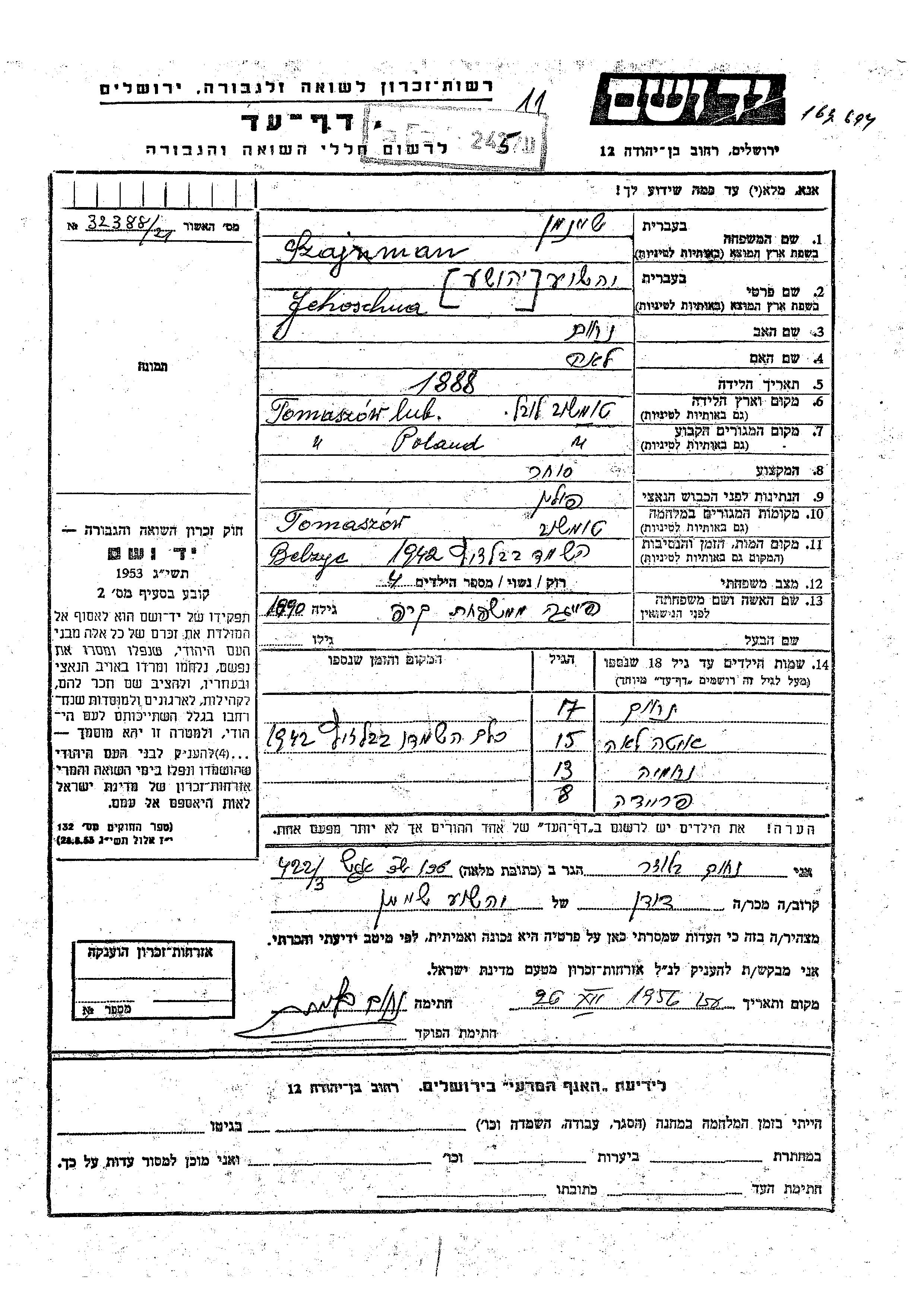 Aufenthaltsort während des Krieges/Schoah