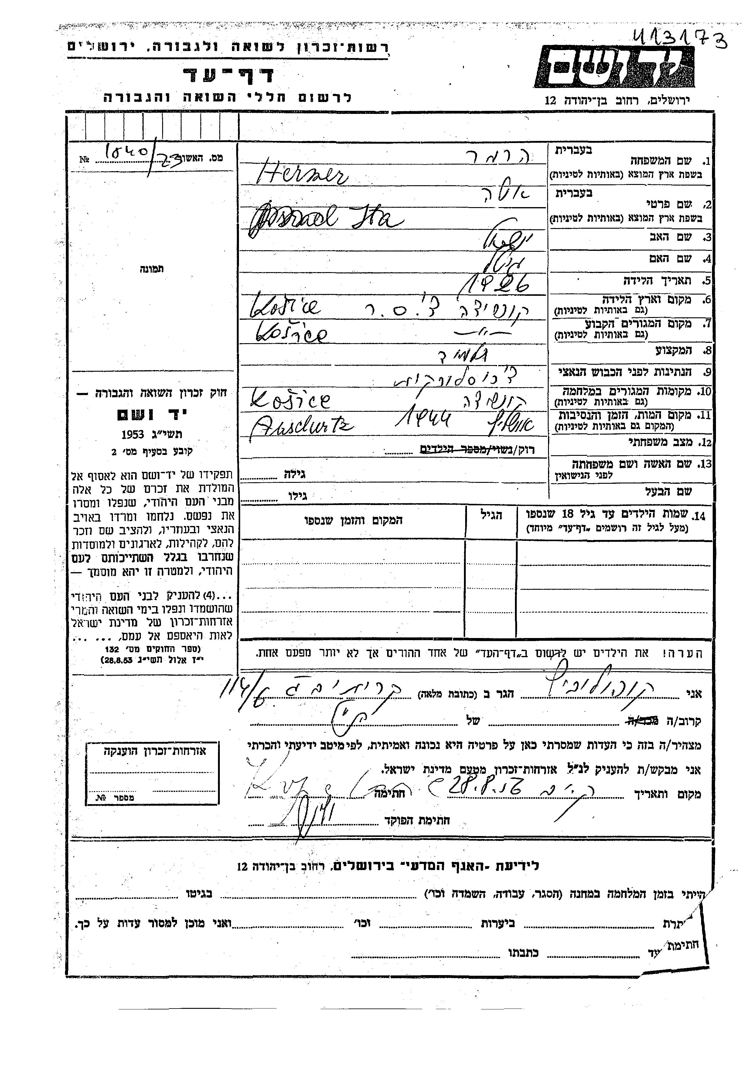 Ita Eta Hermer wurde im Jahr 1926 in Kosice, Tschechoslowakei geboren. Sie war die Tochter von Yisrael und Gitel. Sie war Schüler/-in und Ledig. Vor dem Zweiten Weltkrieg lebte sie in Kosice, Tschechoslowakei. Während des Krieges war sie in Kosice, Tschechoslowakei.