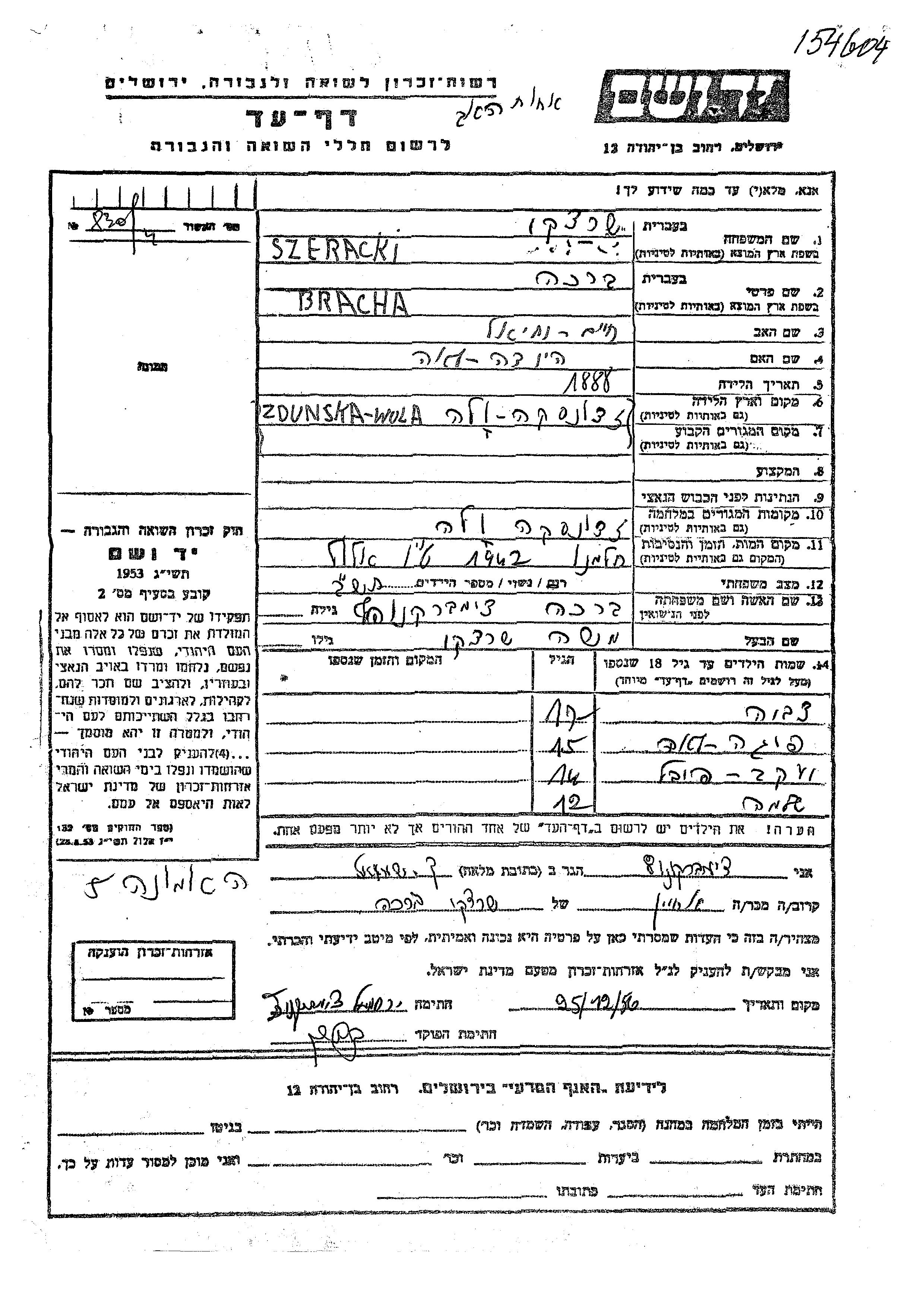 Szeracki Feiga Lea Zdunska Wola, Polen Gedenkblatt