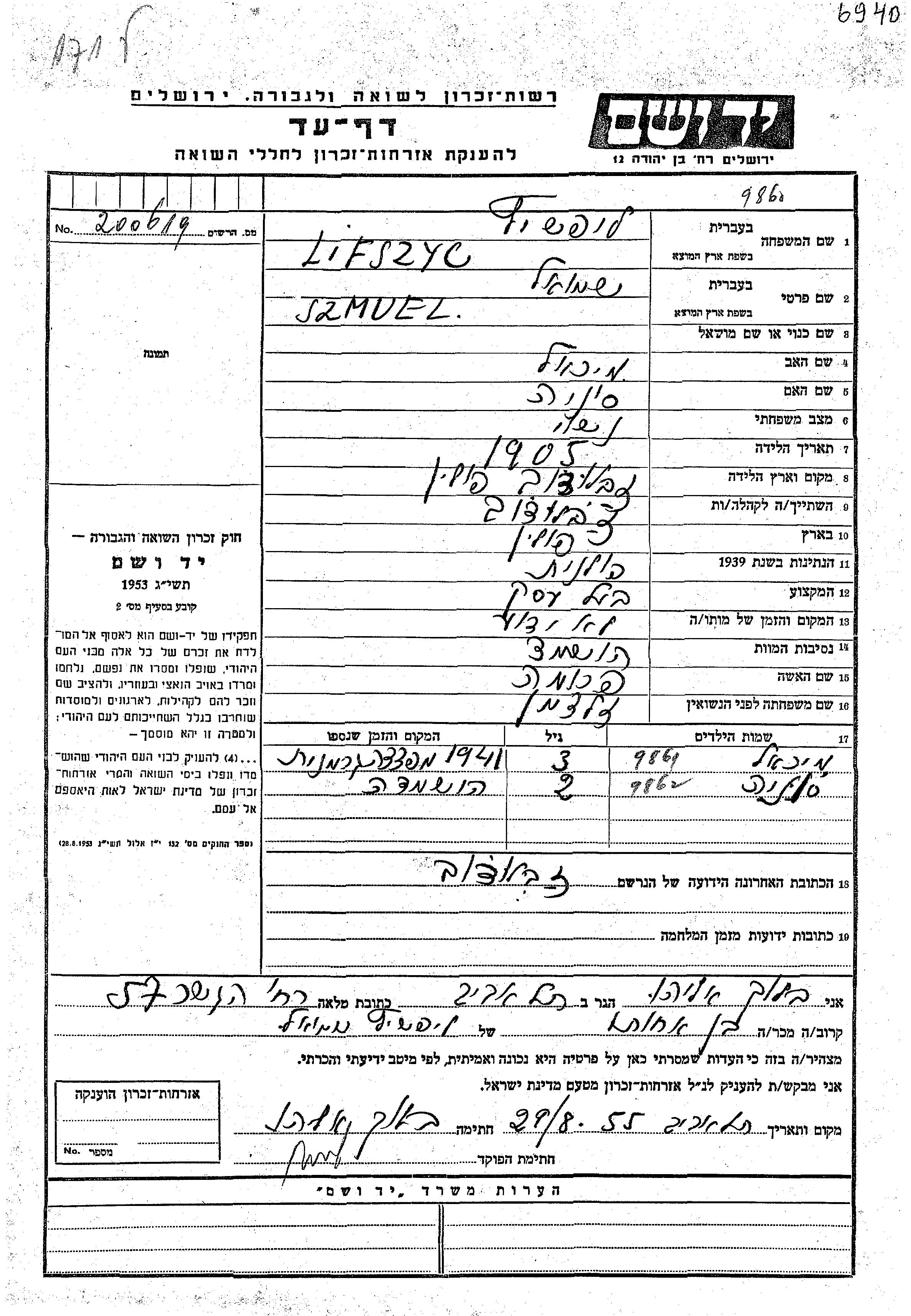 Sonia Lipszyc wurde Sie war die Tochter von Szmuel und Fruma, geb. Zaldman. Sie war Kind. Vor dem Zweiten Weltkrieg lebte sie in Zabludow, Polen. Während des Krieges war sie in Zabludow, Polen.