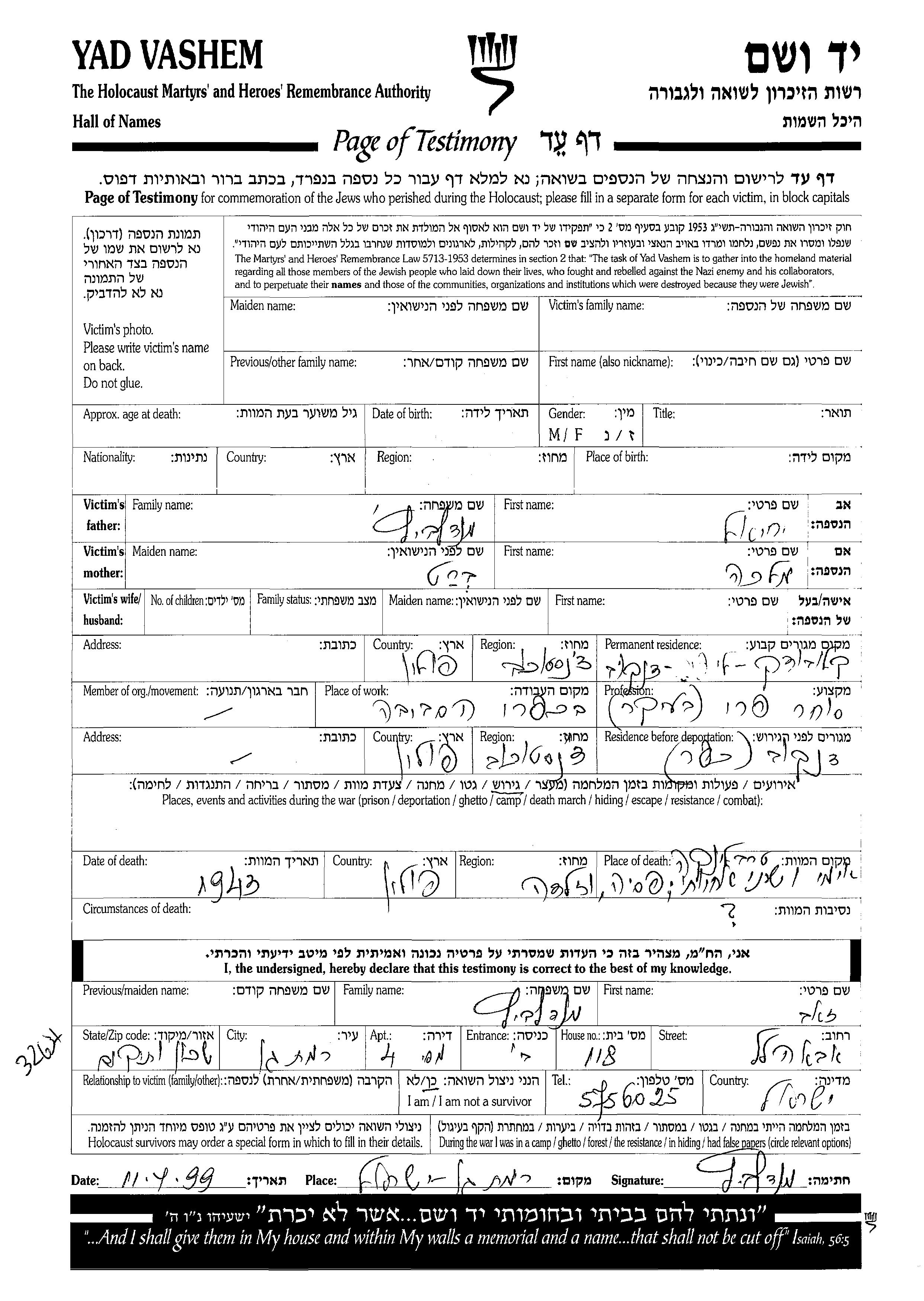Zelda Mendelevitz wurde Sie war die Tochter von Yekhiel und Malka, geb. Brat. Sie war Kind. Vor dem Zweiten Weltkrieg lebte sie in Klobuck, Polen. Während des Krieges war sie in Dankow, Polen.