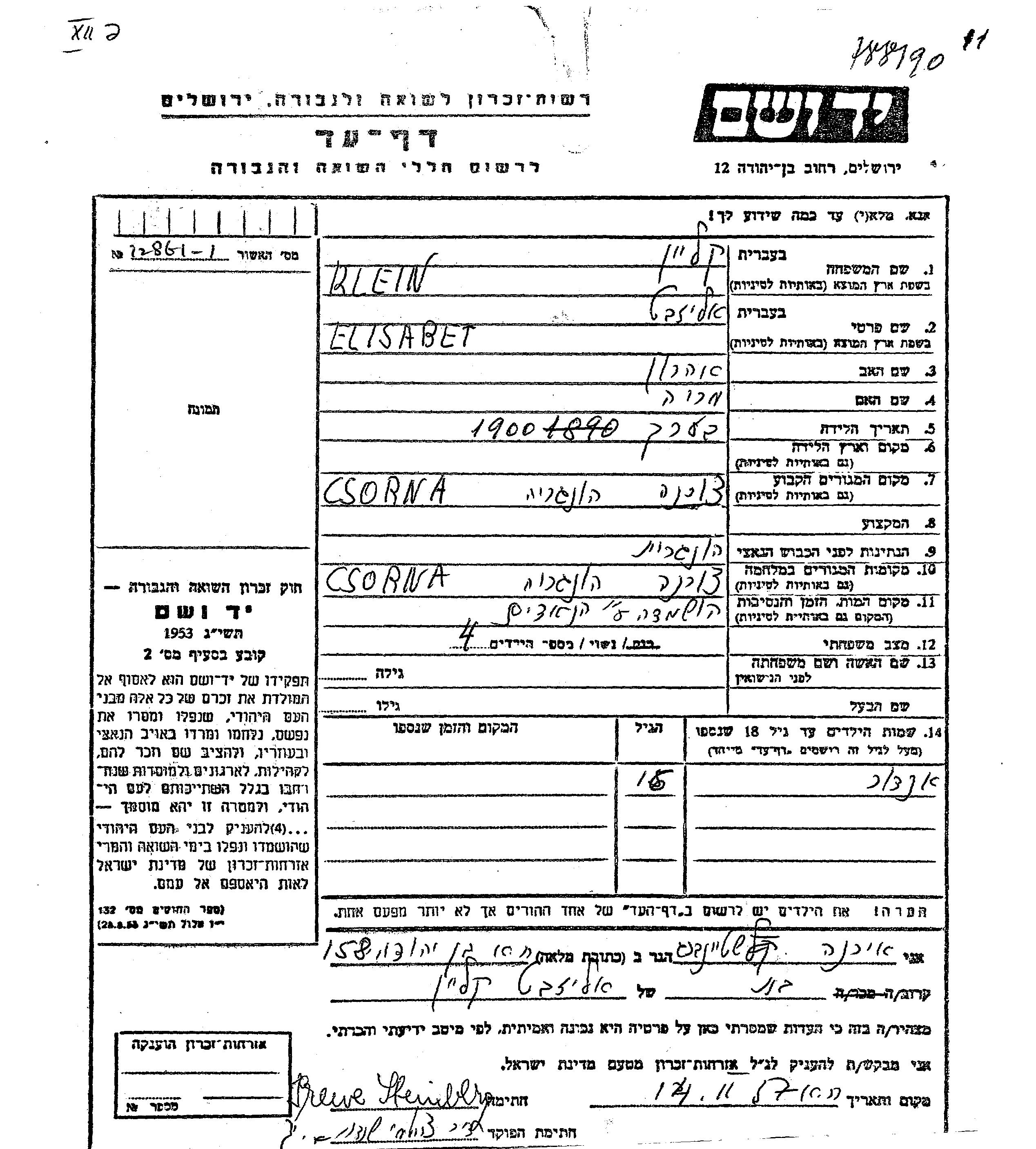 Andor Klein wurde Er war der Sohn von Elisabet. Er war Kind. Vor dem Zweiten Weltkrieg lebte er in Csorna, Ungarn. Während des Krieges war er in Csorna.