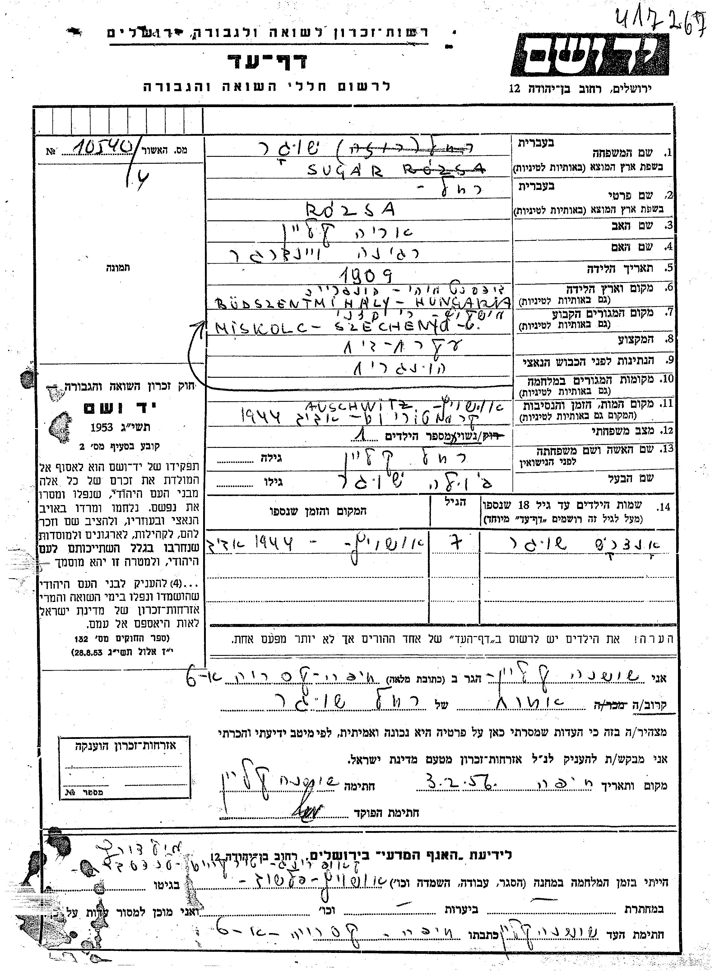Andrash Sugar wurde Er war der Sohn von Giula und Rosza, geb. Klein. Er war Kind. Vor dem Zweiten Weltkrieg lebte er in Miskolc, Ungarn. Während des Krieges war er in Miskolc, Ungarn.