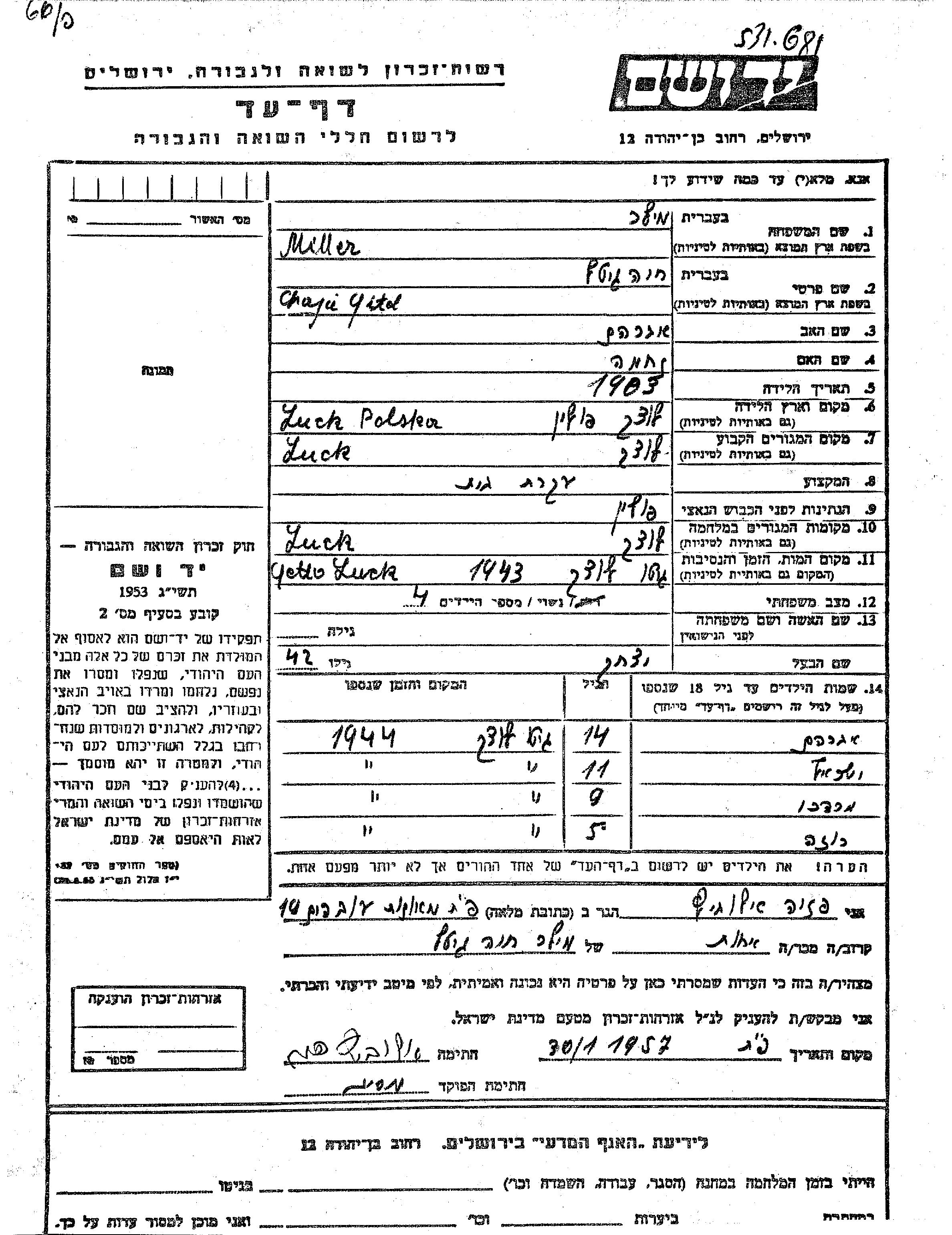 Roza Miller wurde Er/sie war der/ die Sohn/Tochter von Yitzkhak und Chaja Gitel. Er/Sie war Kind. Vor dem Zweiten Weltkrieg er/sie in Luck, Polen. Während des Krieges war er/sie in Luck, Polen.