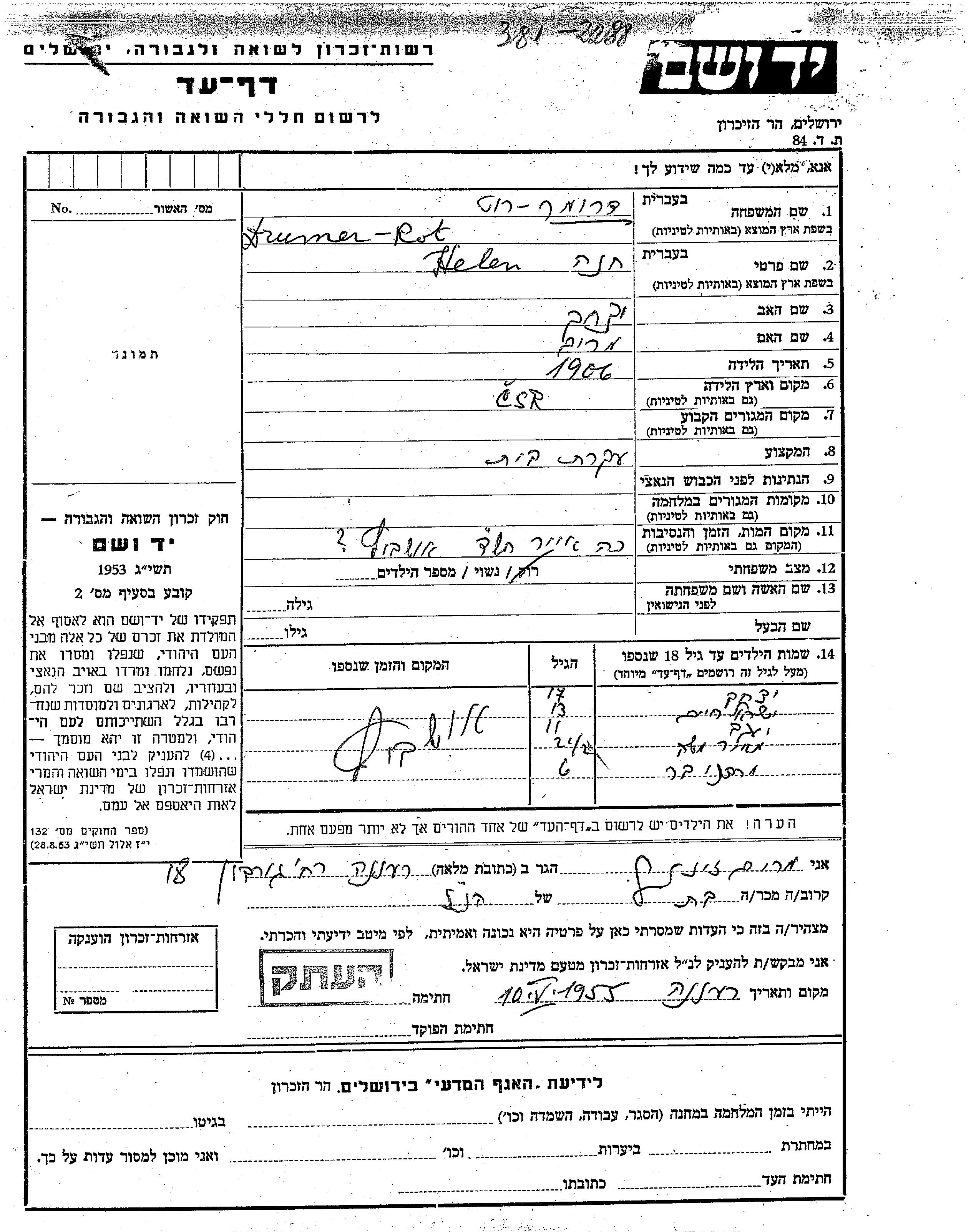 Drumer Dromer Rut Yaakov unbekannter Ort, Gedenkblatt