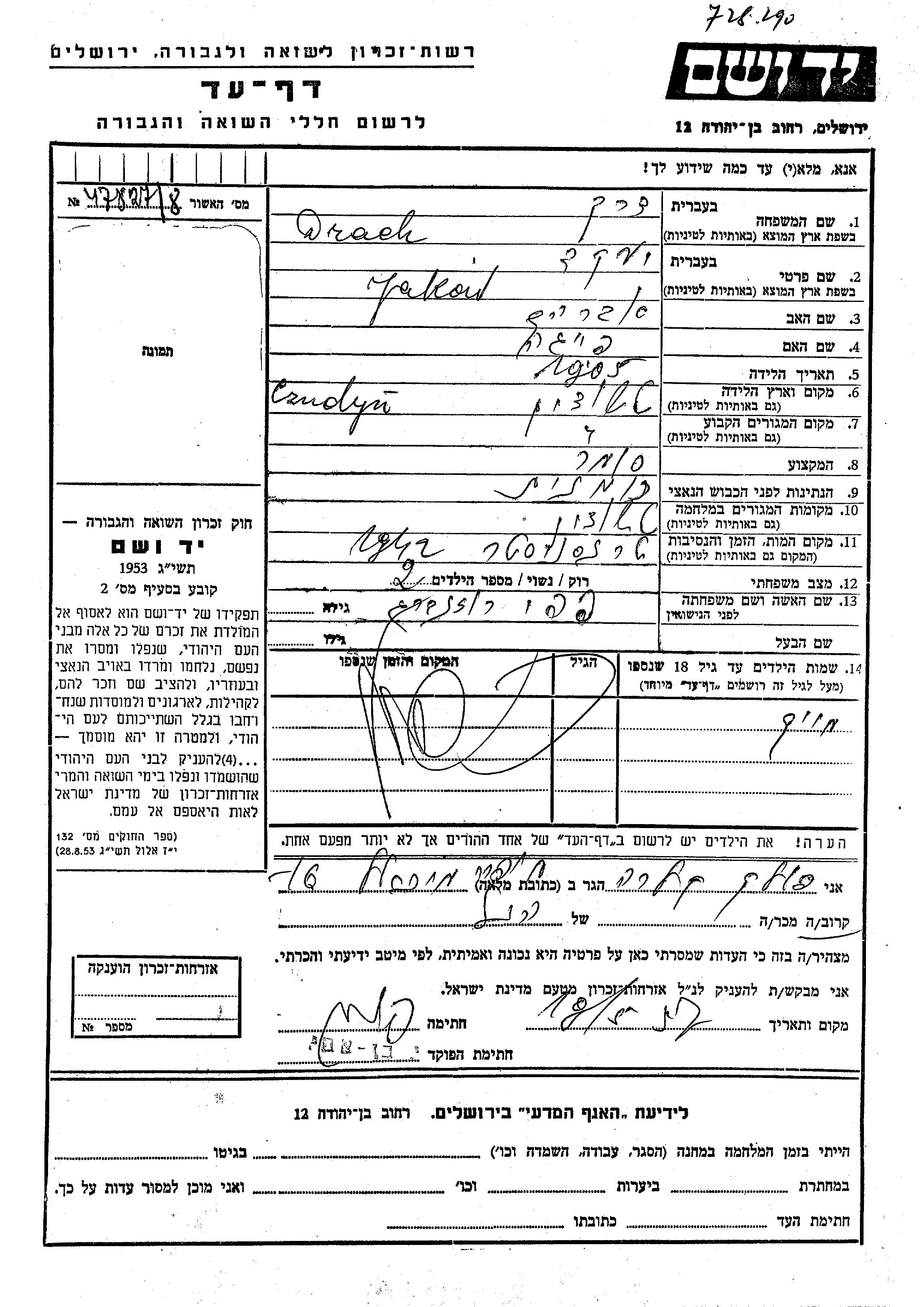 Khaim Drach wurde Er war der Sohn von Yakow und Pepi, geb. Rozenberg. Er war Kind. Vor dem Zweiten Weltkrieg lebte er in Czudyn, Rumänien. Während des Krieges war er in Czudyn, Rumänien.