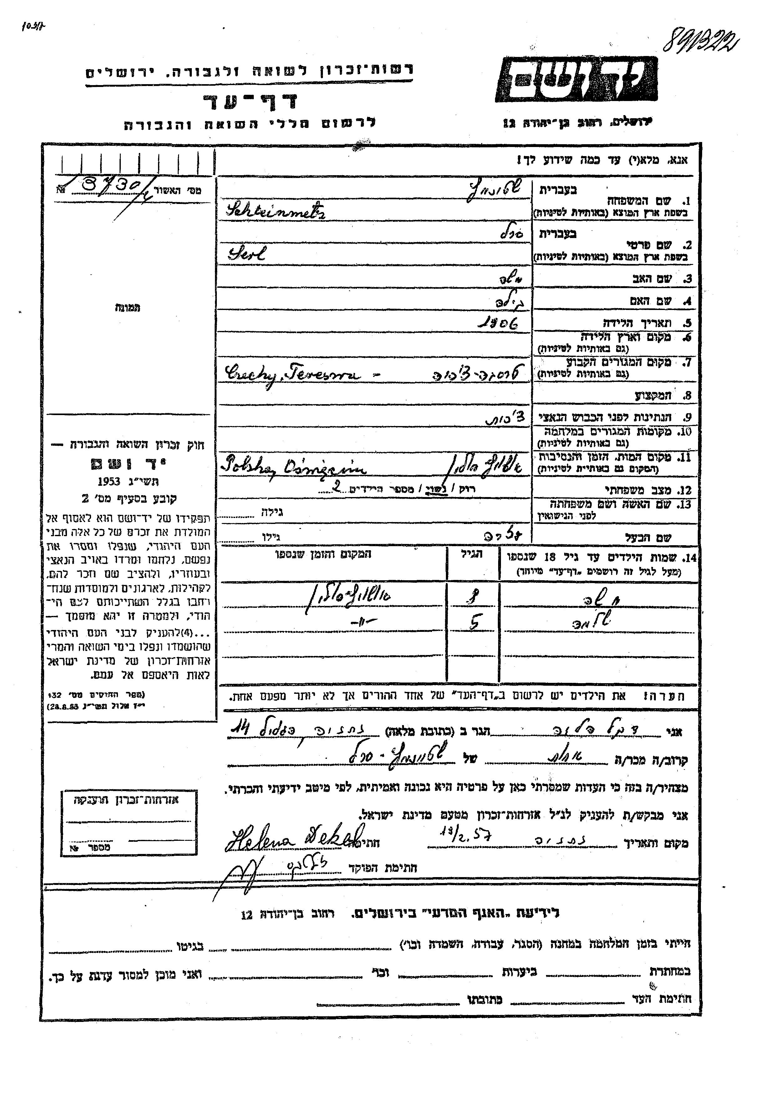 Perl wurde in der Schoah ermordet. Todesort: Auschwitz, Polen.
