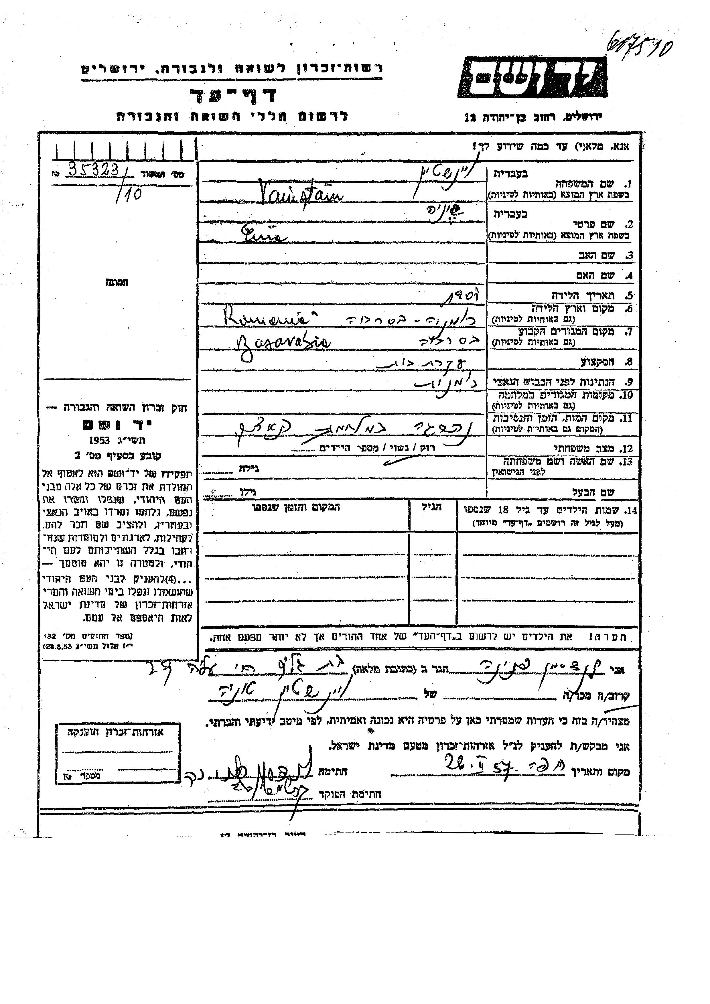 Enia Vainstain wurde im Jahr 1905 in Bessarabia, Rumänien geboren. Sie war Hausfrau und Verheiratet. Vor dem Zweiten Weltkrieg lebte sie in Bessarabia, Rumänien.