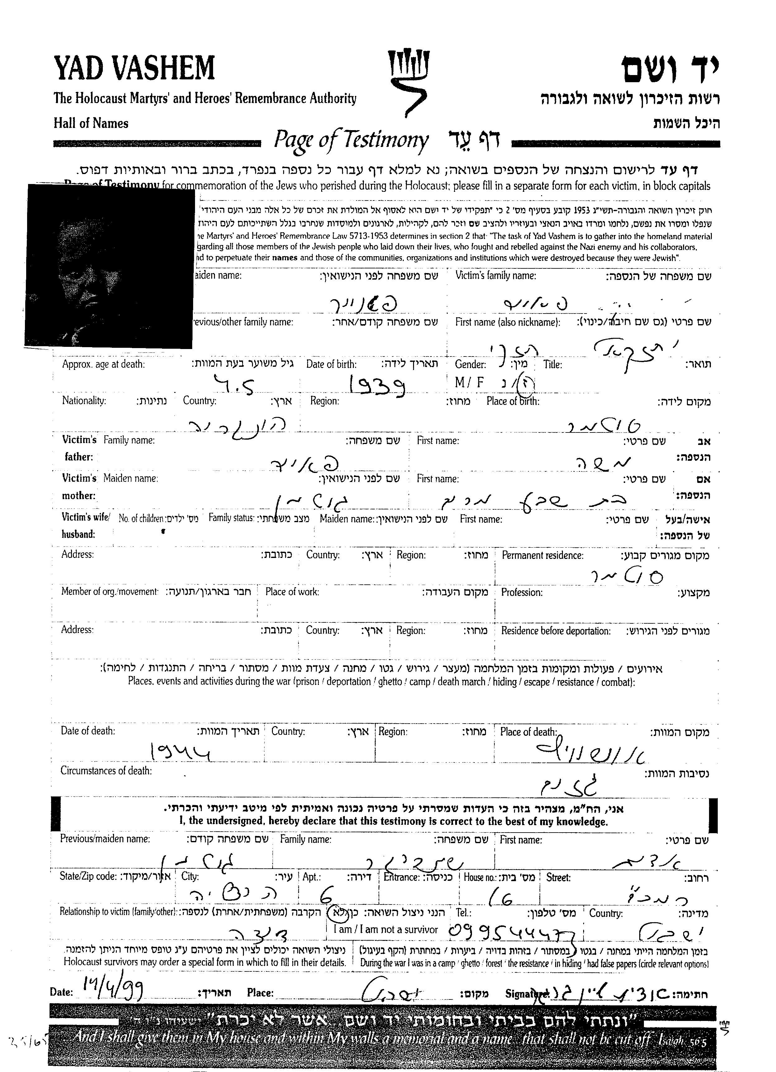 Yekhezkel wurde in der Schoah ermordet. Todesort: Auschwitz, Polen im Jahr 1944.